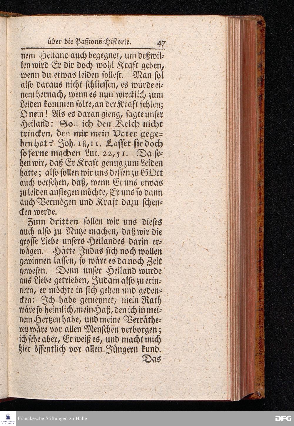 August Hermann Franckens S.THEOL.PROF.ORD.und PAST. Öffentliche Reden Uber die Paßions=Historie, Wie dieselbe Vom Evangelisten Marco im 14. und 15. Cap. beschrieben ist, Gehalten von Esto mihi bis Ostern 1712. In dem Waysenhause zu Glaucha an Halle. Vierte Edition. HALLE, verlegt im Wäysenhause, 1751.