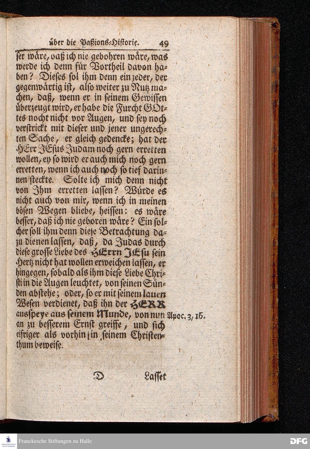 August Hermann Franckens S.THEOL.PROF.ORD.und PAST. Öffentliche Reden Uber die Paßions=Historie, Wie dieselbe Vom Evangelisten Marco im 14. und 15. Cap. beschrieben ist, Gehalten von Esto mihi bis Ostern 1712. In dem Waysenhause zu Glaucha an Halle. Vierte Edition. HALLE, verlegt im Wäysenhause, 1751.