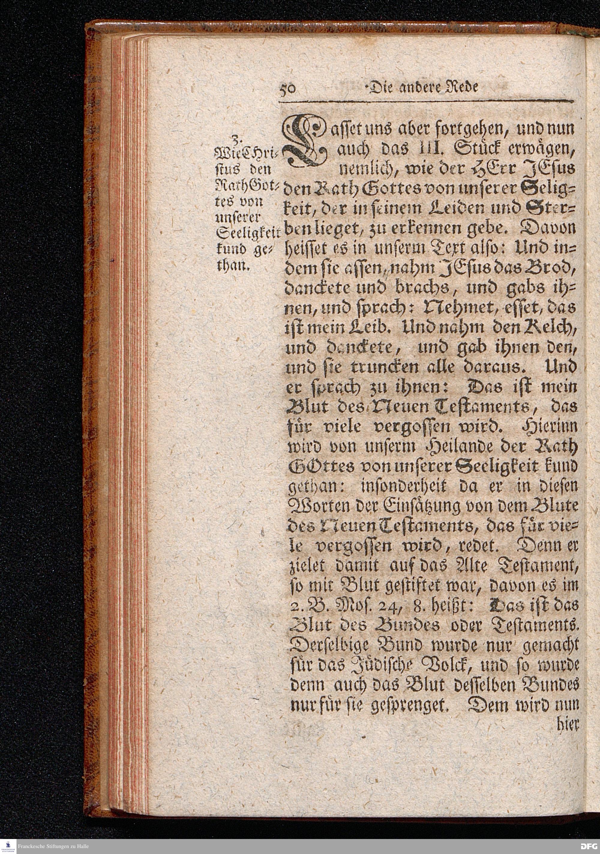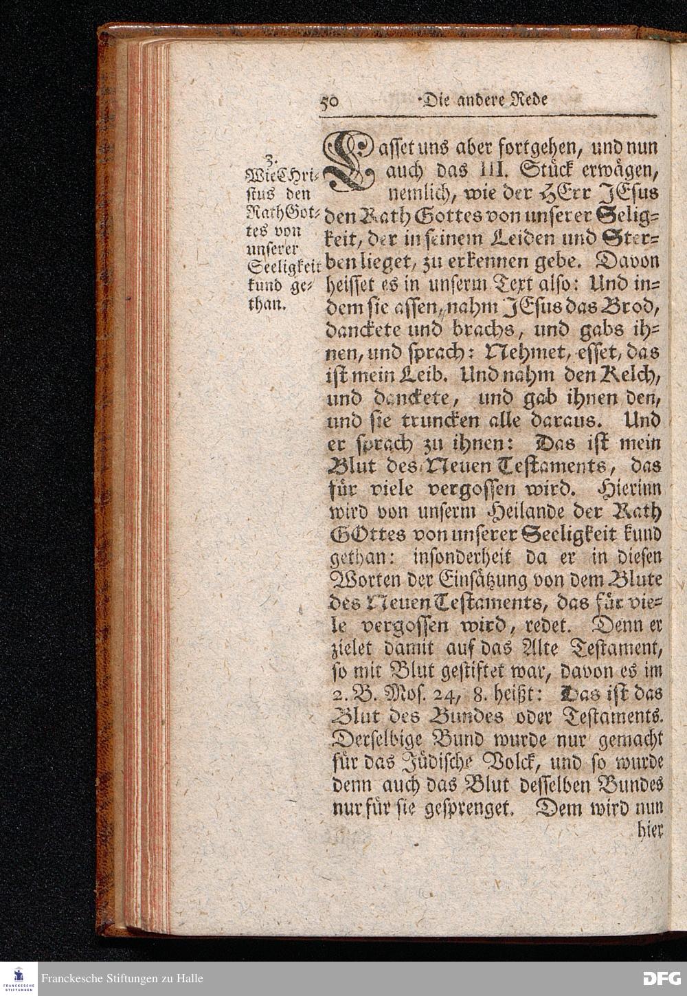 August Hermann Franckens S.THEOL.PROF.ORD.und PAST. Öffentliche Reden Uber die Paßions=Historie, Wie dieselbe Vom Evangelisten Marco im 14. und 15. Cap. beschrieben ist, Gehalten von Esto mihi bis Ostern 1712. In dem Waysenhause zu Glaucha an Halle. Vierte Edition. HALLE, verlegt im Wäysenhause, 1751.
