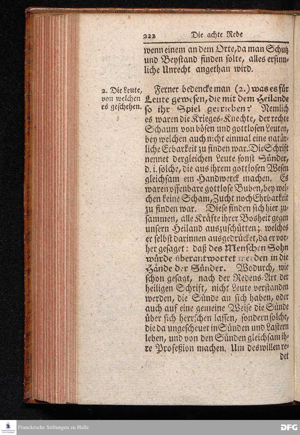 August Hermann Franckens S.THEOL.PROF.ORD.und PAST. Öffentliche Reden Uber die Paßions=Historie, Wie dieselbe Vom Evangelisten Marco im 14. und 15. Cap. beschrieben ist, Gehalten von Esto mihi bis Ostern 1712. In dem Waysenhause zu Glaucha an Halle. Vierte Edition. HALLE, verlegt im Wäysenhause, 1751.