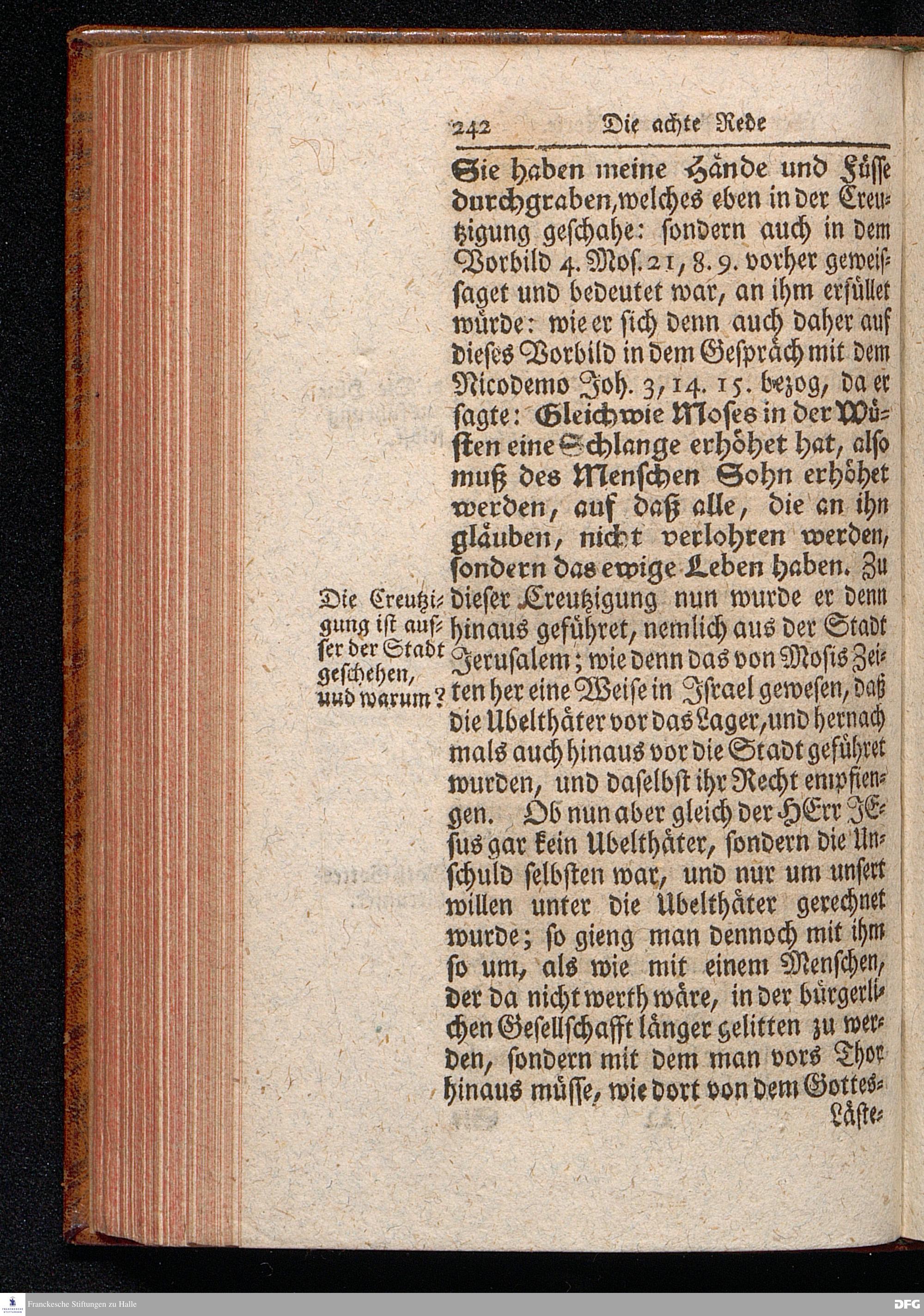 August Hermann Franckens S.THEOL.PROF.ORD.und PAST. Öffentliche Reden Uber die Paßions=Historie, Wie dieselbe Vom Evangelisten Marco im 14. und 15. Cap. beschrieben ist, Gehalten von Esto mihi bis Ostern 1712. In dem Waysenhause zu Glaucha an Halle. Vierte Edition. HALLE, verlegt im Wäysenhause, 1751.