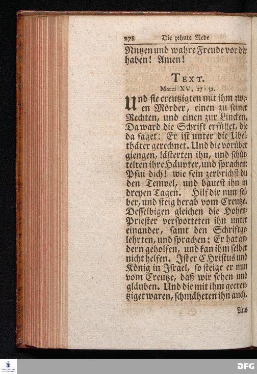 August Hermann Franckens S.THEOL.PROF.ORD.und PAST. Öffentliche Reden Uber die Paßions=Historie, Wie dieselbe Vom Evangelisten Marco im 14. und 15. Cap. beschrieben ist, Gehalten von Esto mihi bis Ostern 1712. In dem Waysenhause zu Glaucha an Halle. Vierte Edition. HALLE, verlegt im Wäysenhause, 1751.