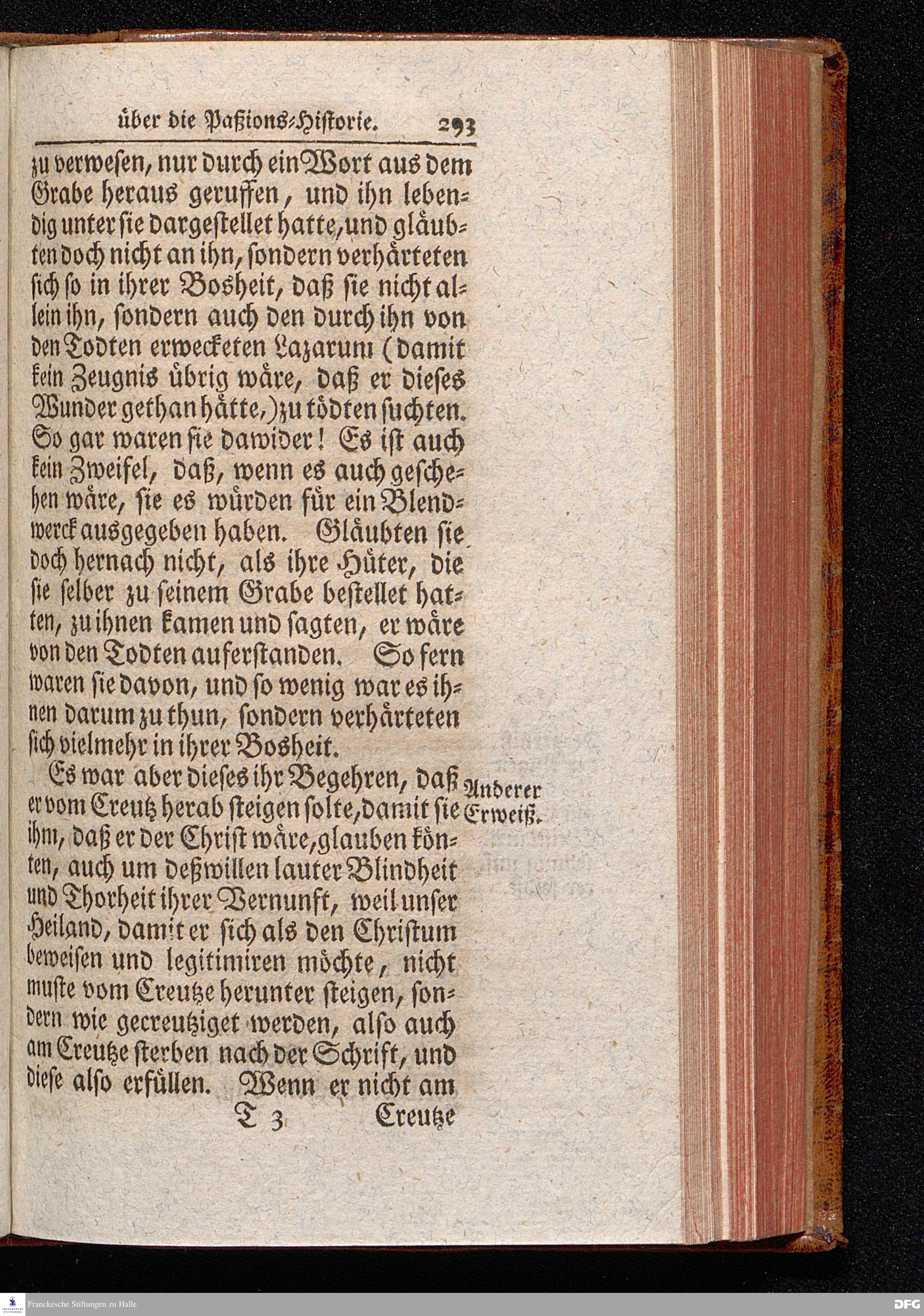 August Hermann Franckens S.THEOL.PROF.ORD.und PAST. Öffentliche Reden Uber die Paßions=Historie, Wie dieselbe Vom Evangelisten Marco im 14. und 15. Cap. beschrieben ist, Gehalten von Esto mihi bis Ostern 1712. In dem Waysenhause zu Glaucha an Halle. Vierte Edition. HALLE, verlegt im Wäysenhause, 1751.
