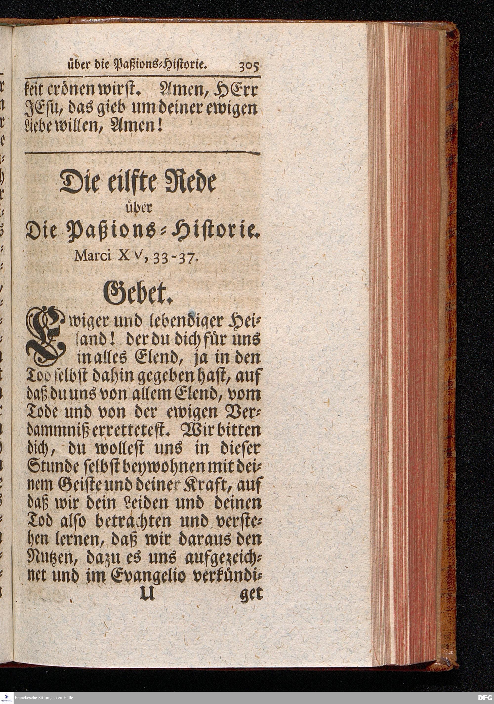 August Hermann Franckens S.THEOL.PROF.ORD.und PAST. Öffentliche Reden Uber die Paßions=Historie, Wie dieselbe Vom Evangelisten Marco im 14. und 15. Cap. beschrieben ist, Gehalten von Esto mihi bis Ostern 1712. In dem Waysenhause zu Glaucha an Halle. Vierte Edition. HALLE, verlegt im Wäysenhause, 1751.