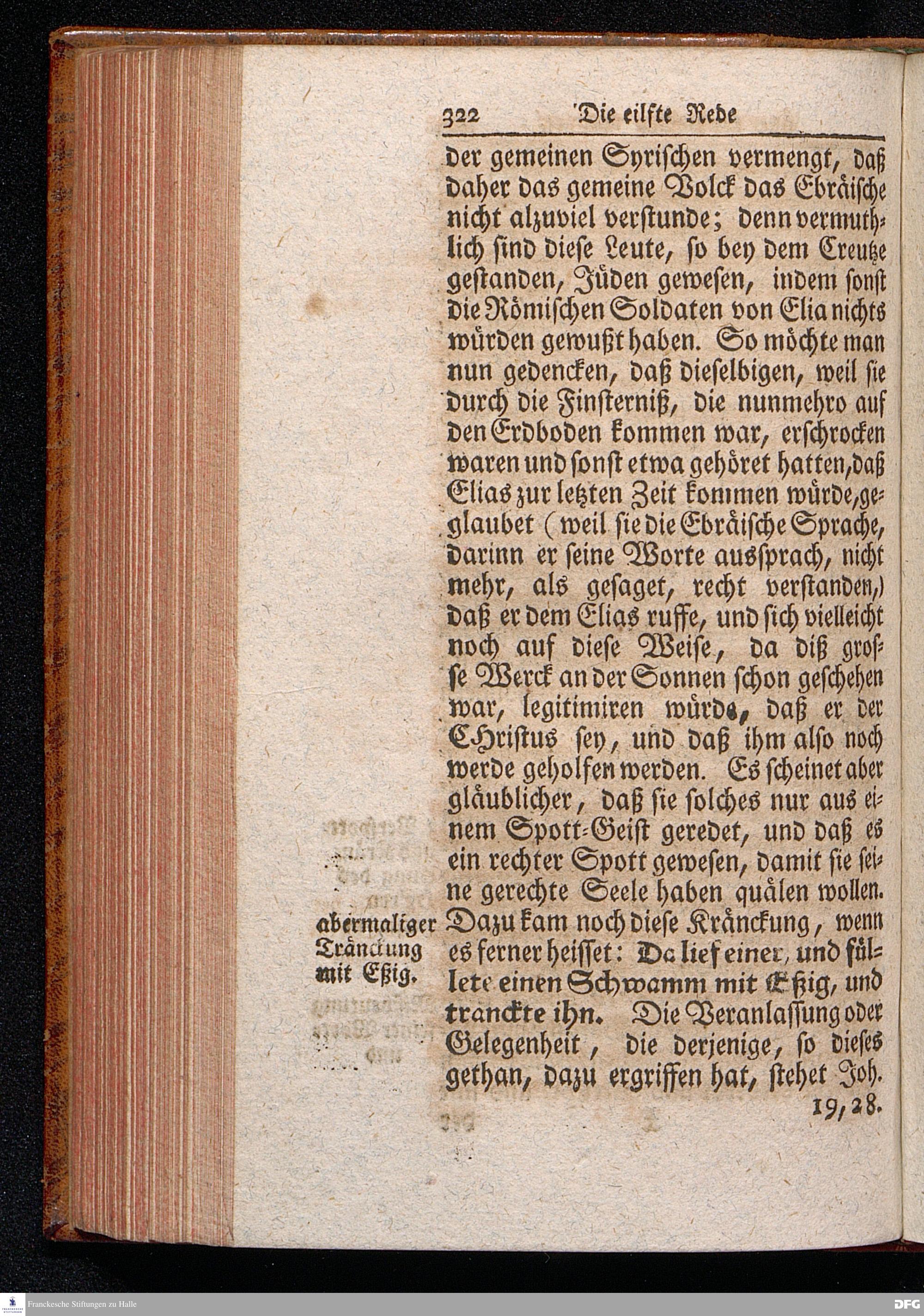 August Hermann Franckens S.THEOL.PROF.ORD.und PAST. Öffentliche Reden Uber die Paßions=Historie, Wie dieselbe Vom Evangelisten Marco im 14. und 15. Cap. beschrieben ist, Gehalten von Esto mihi bis Ostern 1712. In dem Waysenhause zu Glaucha an Halle. Vierte Edition. HALLE, verlegt im Wäysenhause, 1751.
