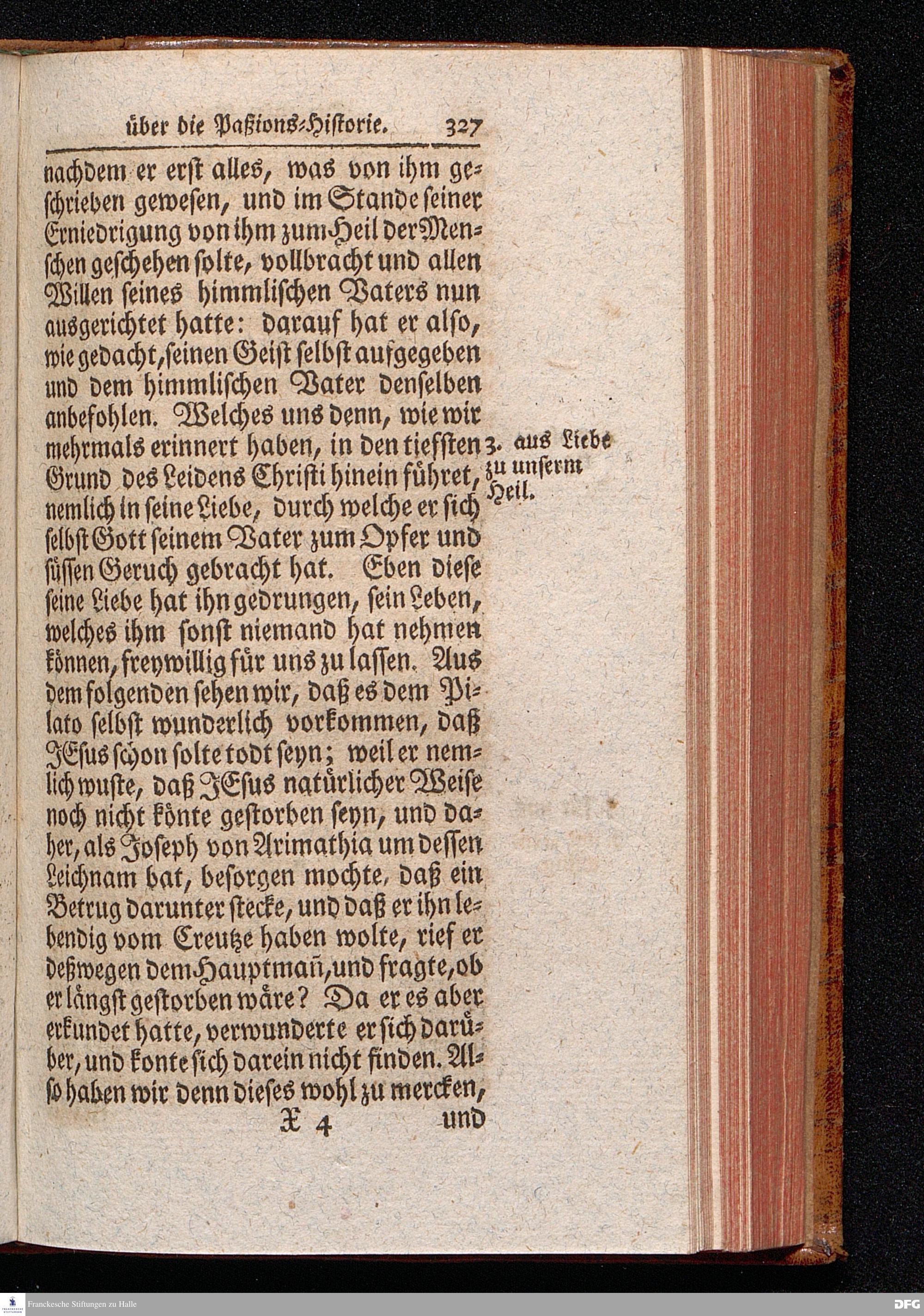 August Hermann Franckens S.THEOL.PROF.ORD.und PAST. Öffentliche Reden Uber die Paßions=Historie, Wie dieselbe Vom Evangelisten Marco im 14. und 15. Cap. beschrieben ist, Gehalten von Esto mihi bis Ostern 1712. In dem Waysenhause zu Glaucha an Halle. Vierte Edition. HALLE, verlegt im Wäysenhause, 1751.