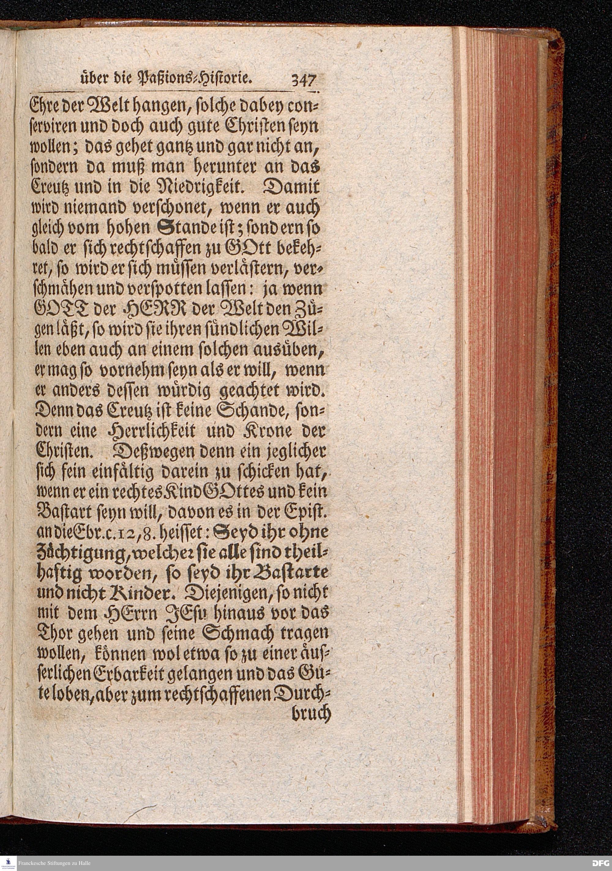 August Hermann Franckens S.THEOL.PROF.ORD.und PAST. Öffentliche Reden Uber die Paßions=Historie, Wie dieselbe Vom Evangelisten Marco im 14. und 15. Cap. beschrieben ist, Gehalten von Esto mihi bis Ostern 1712. In dem Waysenhause zu Glaucha an Halle. Vierte Edition. HALLE, verlegt im Wäysenhause, 1751.