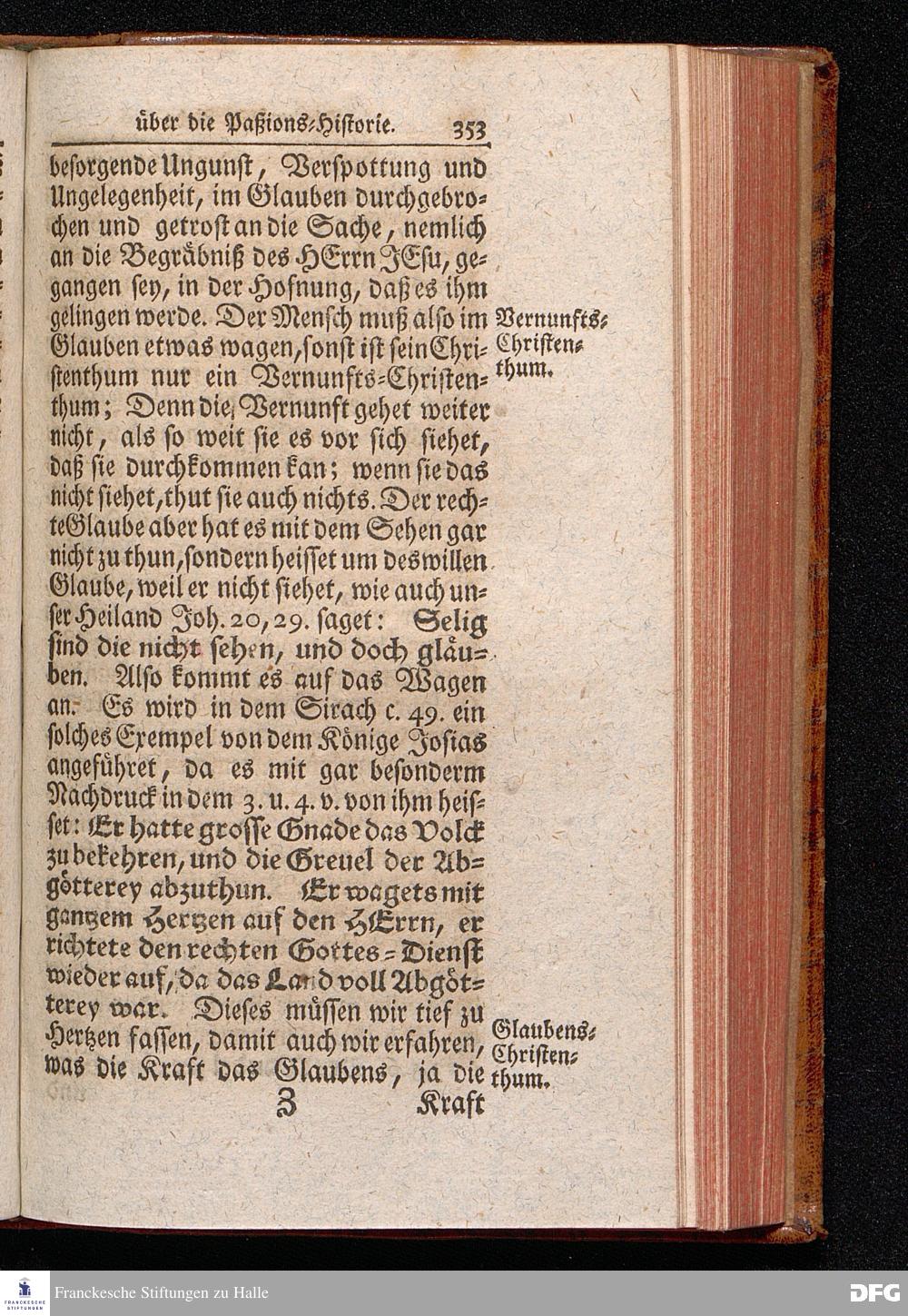 August Hermann Franckens S.THEOL.PROF.ORD.und PAST. Öffentliche Reden Uber die Paßions=Historie, Wie dieselbe Vom Evangelisten Marco im 14. und 15. Cap. beschrieben ist, Gehalten von Esto mihi bis Ostern 1712. In dem Waysenhause zu Glaucha an Halle. Vierte Edition. HALLE, verlegt im Wäysenhause, 1751.