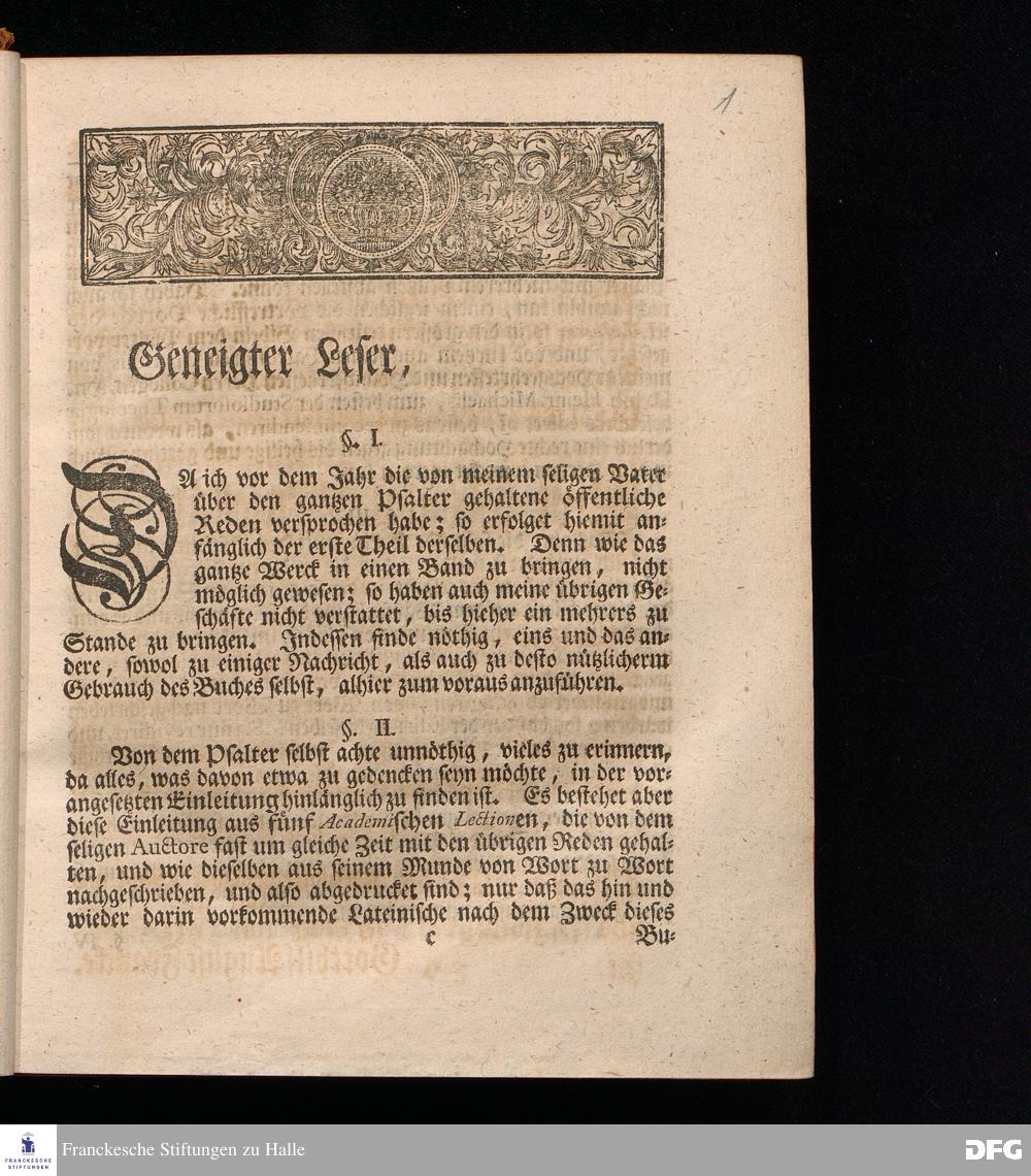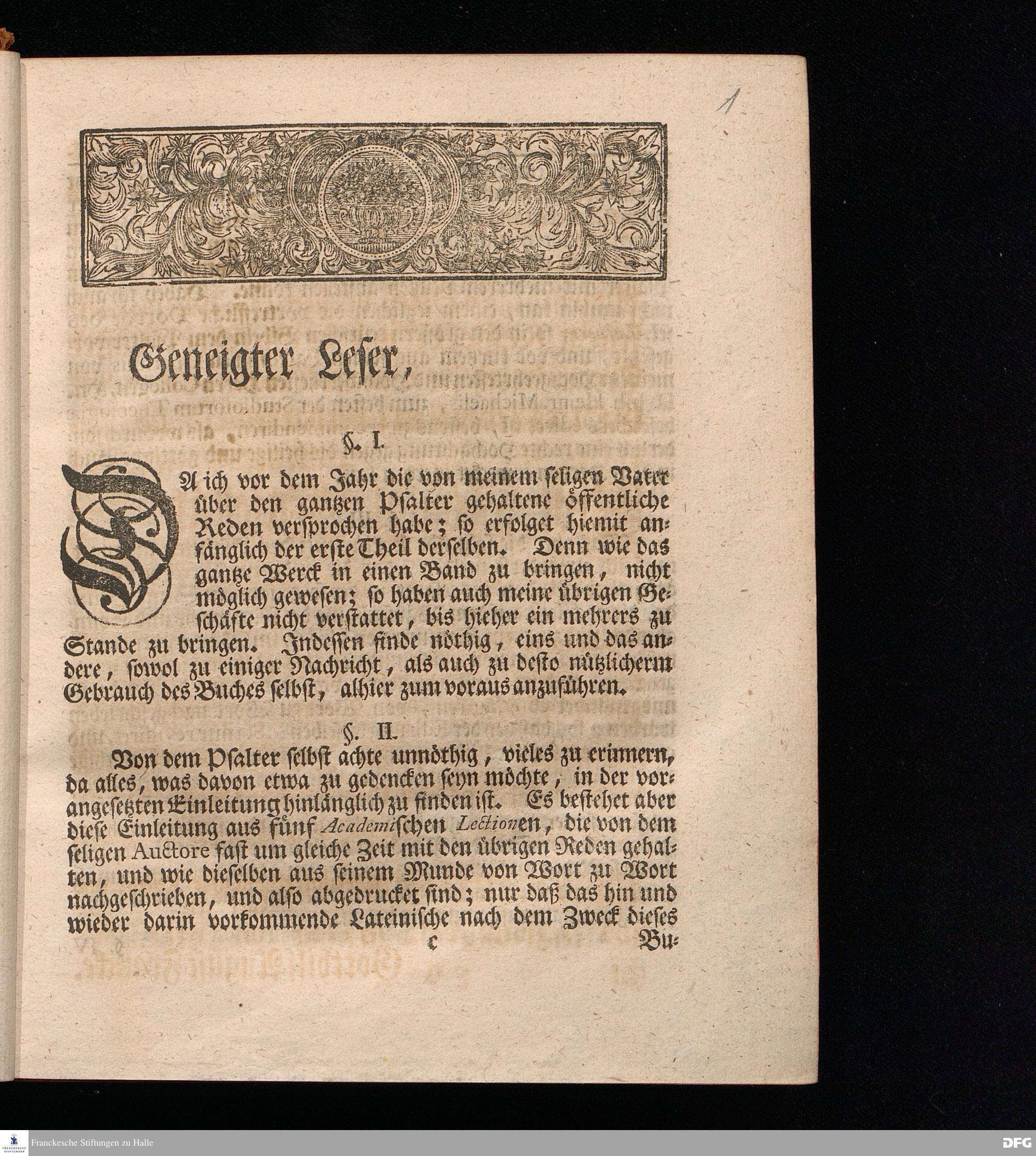 August Hermann Franckens, Weyl.Prof.Theol.Past.Ulr.und Schol. Erklärung Der Psalmen Davids; Erster [und] Anderer Theil, Mit einer Vorrede herausgegeben Von Gotthilf August Francken, S.S.Theol.Doct.und Prof.Publ.Ord.der ersten Dioeces des Saal-Creyses Inspectore und Pred.zur L.Fr. Andere Auflage. HALLE, in Verlegung des Wäysen=Hauses MDCCXLIII--MDCCXLV.