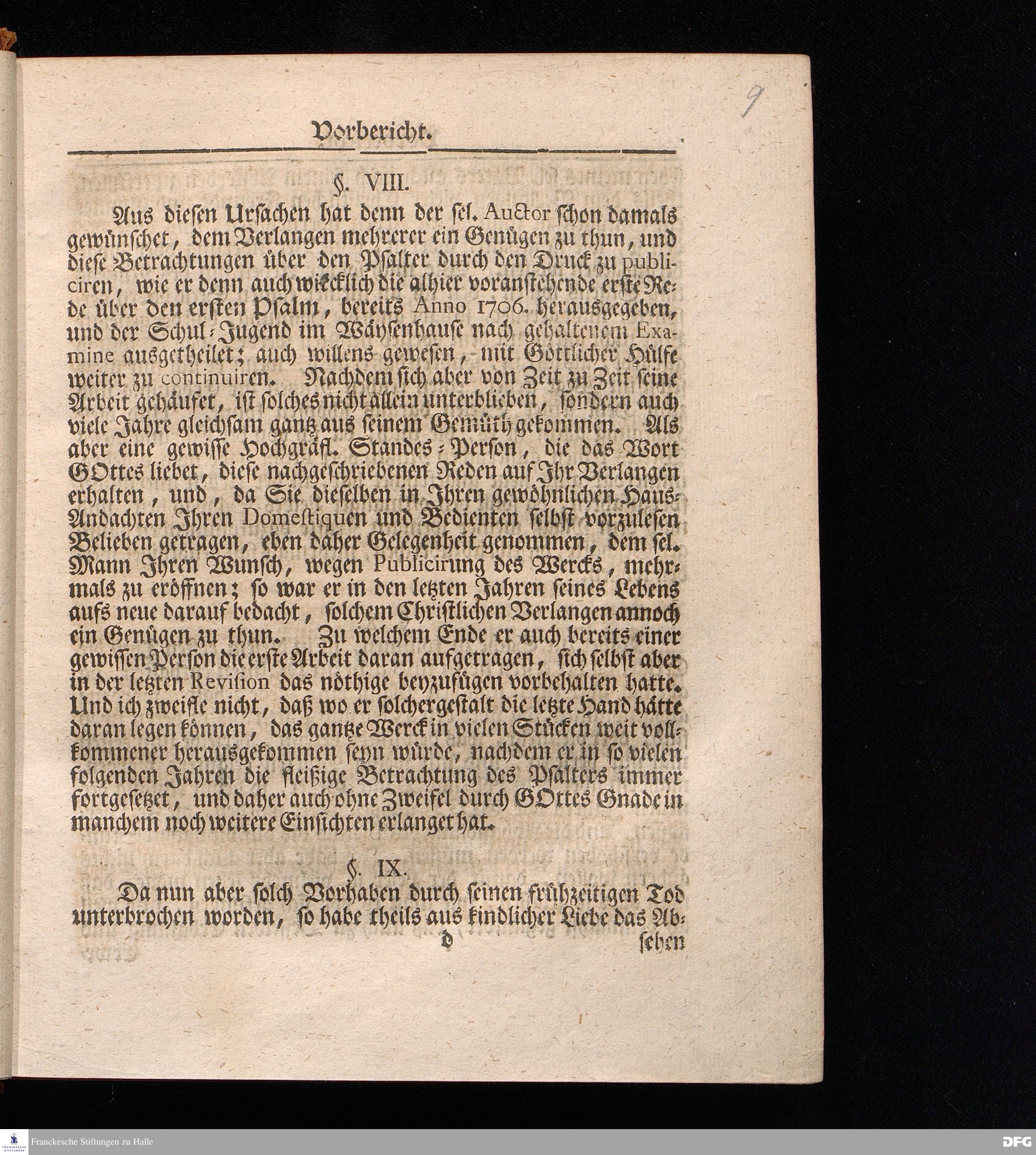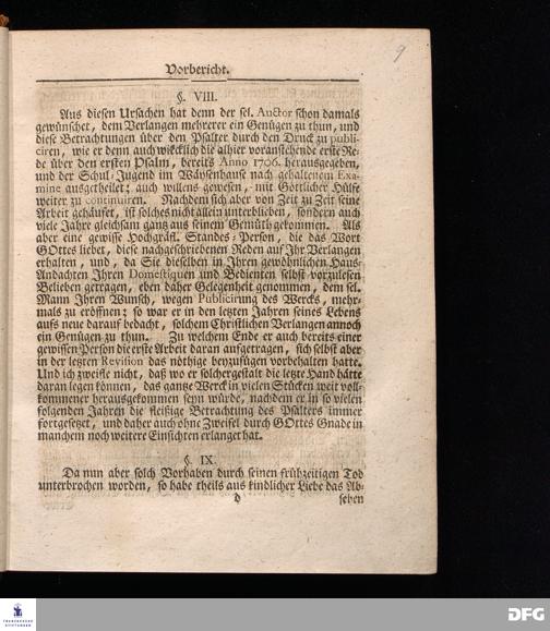 August Hermann Franckens, Weyl.Prof.Theol.Past.Ulr.und Schol. Erklärung Der Psalmen Davids; Erster [und] Anderer Theil, Mit einer Vorrede herausgegeben Von Gotthilf August Francken, S.S.Theol.Doct.und Prof.Publ.Ord.der ersten Dioeces des Saal-Creyses Inspectore und Pred.zur L.Fr. Andere Auflage. HALLE, in Verlegung des Wäysen=Hauses MDCCXLIII--MDCCXLV.