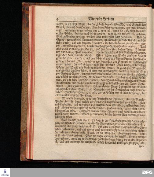 August Hermann Franckens, Weyl.Prof.Theol.Past.Ulr.und Schol. Erklärung Der Psalmen Davids; Erster [und] Anderer Theil, Mit einer Vorrede herausgegeben Von Gotthilf August Francken, S.S.Theol.Doct.und Prof.Publ.Ord.der ersten Dioeces des Saal-Creyses Inspectore und Pred.zur L.Fr. Andere Auflage. HALLE, in Verlegung des Wäysen=Hauses MDCCXLIII--MDCCXLV.