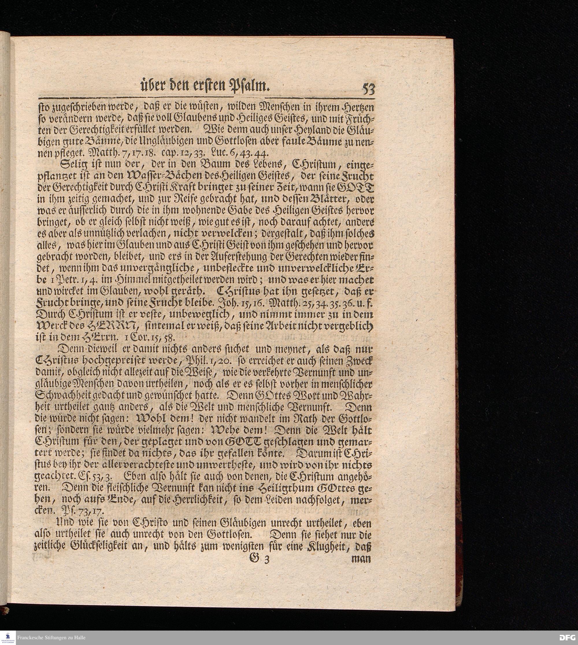 August Hermann Franckens, Weyl.Prof.Theol.Past.Ulr.und Schol. Erklärung Der Psalmen Davids; Erster [und] Anderer Theil, Mit einer Vorrede herausgegeben Von Gotthilf August Francken, S.S.Theol.Doct.und Prof.Publ.Ord.der ersten Dioeces des Saal-Creyses Inspectore und Pred.zur L.Fr. Andere Auflage. HALLE, in Verlegung des Wäysen=Hauses MDCCXLIII--MDCCXLV.