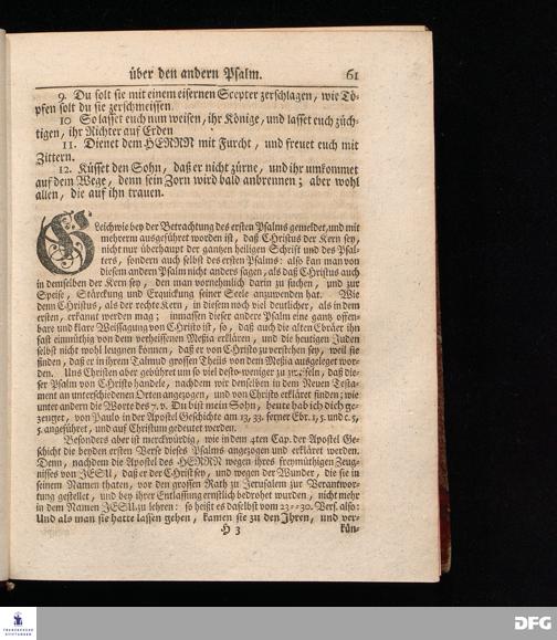 August Hermann Franckens, Weyl.Prof.Theol.Past.Ulr.und Schol. Erklärung Der Psalmen Davids; Erster [und] Anderer Theil, Mit einer Vorrede herausgegeben Von Gotthilf August Francken, S.S.Theol.Doct.und Prof.Publ.Ord.der ersten Dioeces des Saal-Creyses Inspectore und Pred.zur L.Fr. Andere Auflage. HALLE, in Verlegung des Wäysen=Hauses MDCCXLIII--MDCCXLV.