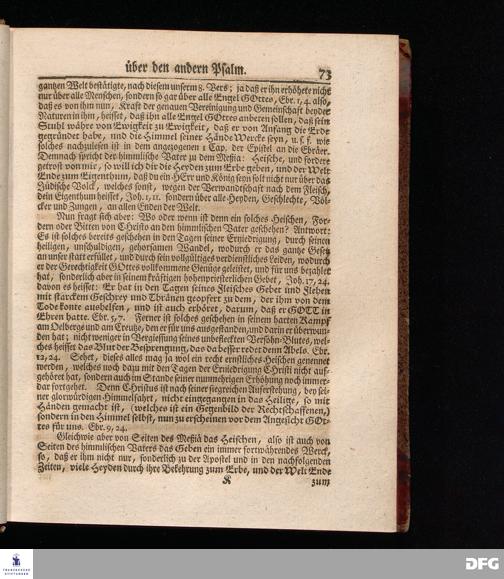 August Hermann Franckens, Weyl.Prof.Theol.Past.Ulr.und Schol. Erklärung Der Psalmen Davids; Erster [und] Anderer Theil, Mit einer Vorrede herausgegeben Von Gotthilf August Francken, S.S.Theol.Doct.und Prof.Publ.Ord.der ersten Dioeces des Saal-Creyses Inspectore und Pred.zur L.Fr. Andere Auflage. HALLE, in Verlegung des Wäysen=Hauses MDCCXLIII--MDCCXLV.