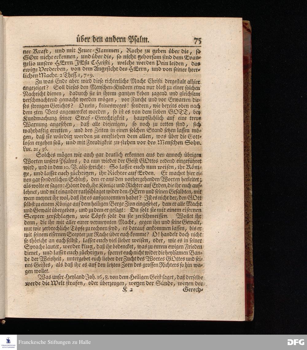 August Hermann Franckens, Weyl.Prof.Theol.Past.Ulr.und Schol. Erklärung Der Psalmen Davids; Erster [und] Anderer Theil, Mit einer Vorrede herausgegeben Von Gotthilf August Francken, S.S.Theol.Doct.und Prof.Publ.Ord.der ersten Dioeces des Saal-Creyses Inspectore und Pred.zur L.Fr. Andere Auflage. HALLE, in Verlegung des Wäysen=Hauses MDCCXLIII--MDCCXLV.
