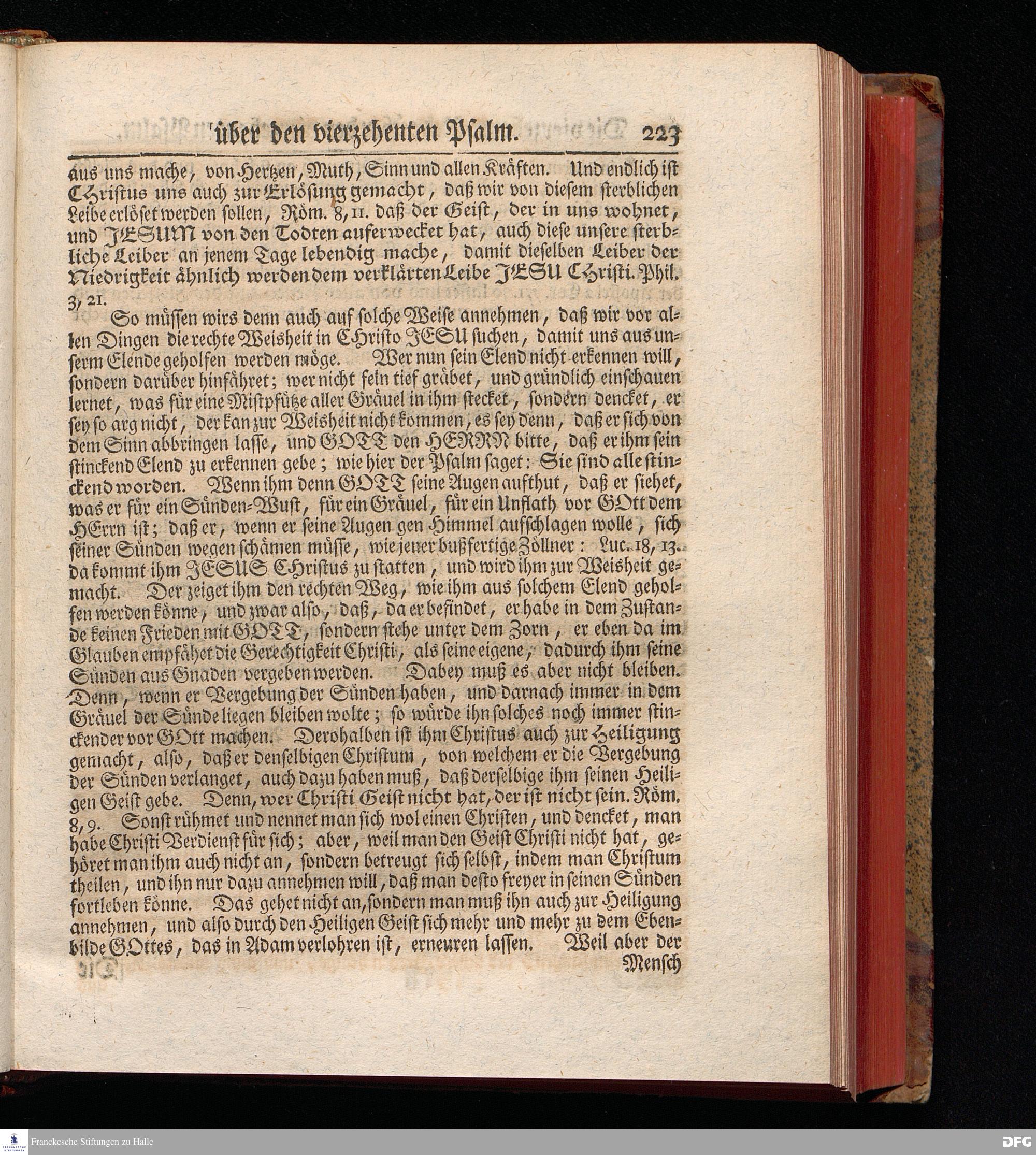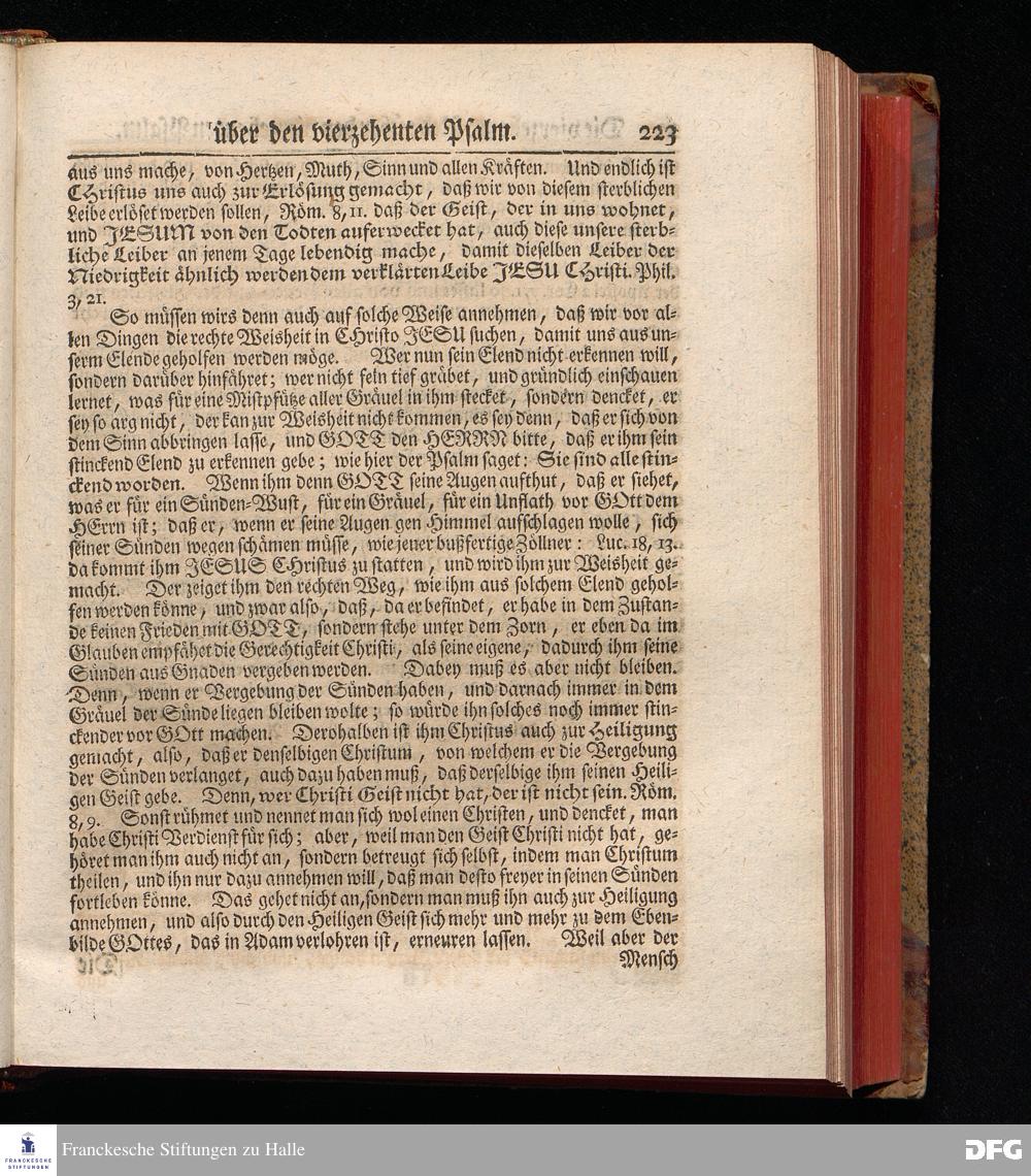 August Hermann Franckens, Weyl.Prof.Theol.Past.Ulr.und Schol. Erklärung Der Psalmen Davids; Erster [und] Anderer Theil, Mit einer Vorrede herausgegeben Von Gotthilf August Francken, S.S.Theol.Doct.und Prof.Publ.Ord.der ersten Dioeces des Saal-Creyses Inspectore und Pred.zur L.Fr. Andere Auflage. HALLE, in Verlegung des Wäysen=Hauses MDCCXLIII--MDCCXLV.
