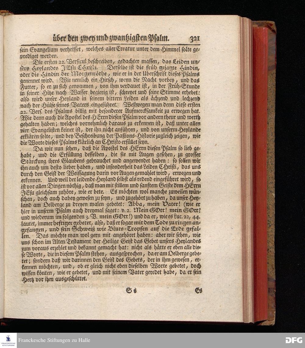 August Hermann Franckens, Weyl.Prof.Theol.Past.Ulr.und Schol. Erklärung Der Psalmen Davids; Erster [und] Anderer Theil, Mit einer Vorrede herausgegeben Von Gotthilf August Francken, S.S.Theol.Doct.und Prof.Publ.Ord.der ersten Dioeces des Saal-Creyses Inspectore und Pred.zur L.Fr. Andere Auflage. HALLE, in Verlegung des Wäysen=Hauses MDCCXLIII--MDCCXLV.