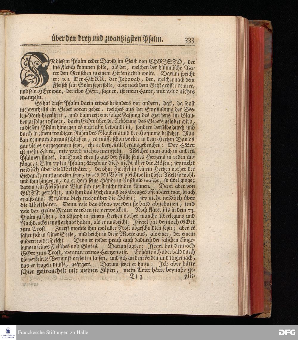 August Hermann Franckens, Weyl.Prof.Theol.Past.Ulr.und Schol. Erklärung Der Psalmen Davids; Erster [und] Anderer Theil, Mit einer Vorrede herausgegeben Von Gotthilf August Francken, S.S.Theol.Doct.und Prof.Publ.Ord.der ersten Dioeces des Saal-Creyses Inspectore und Pred.zur L.Fr. Andere Auflage. HALLE, in Verlegung des Wäysen=Hauses MDCCXLIII--MDCCXLV.