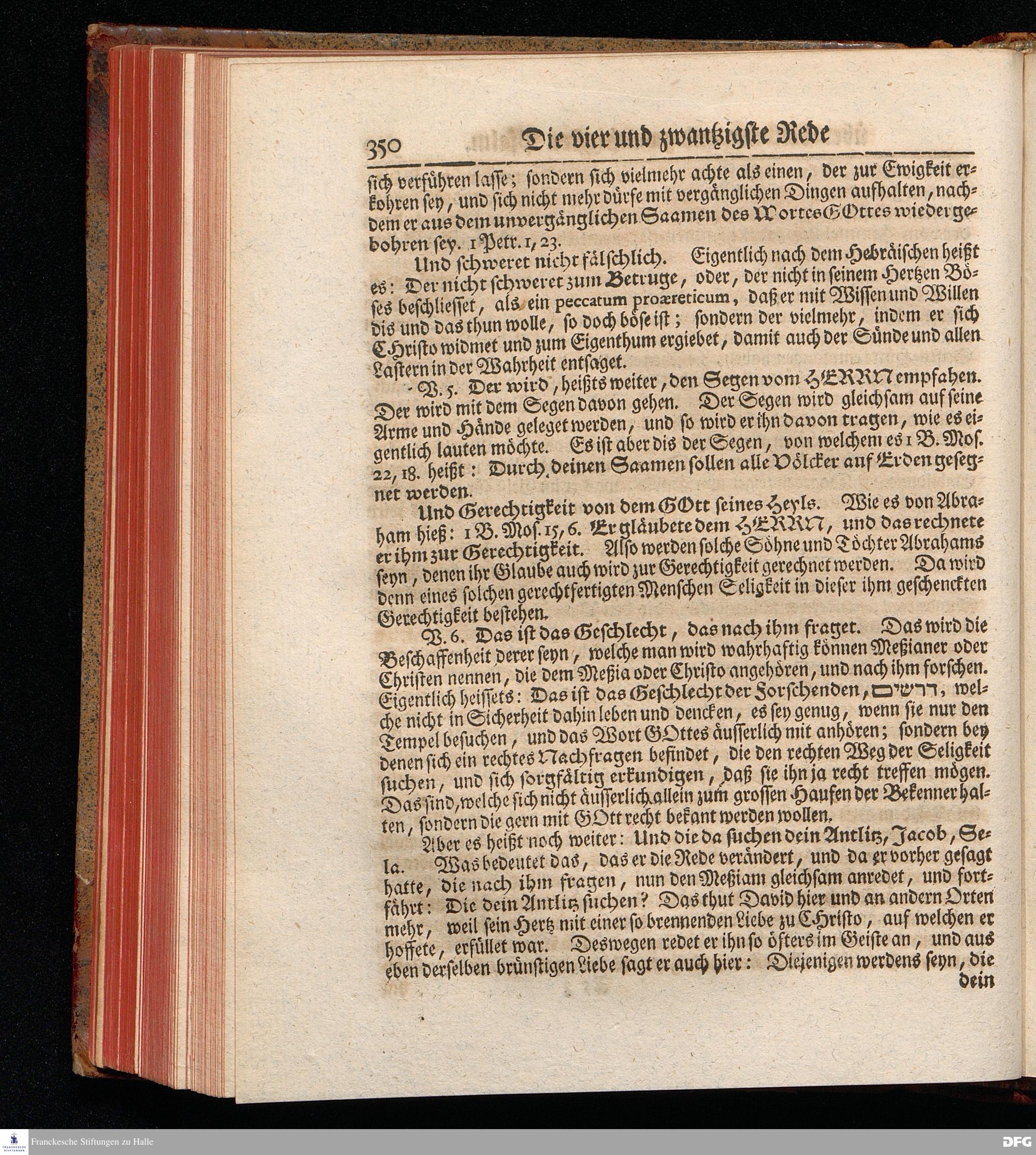 August Hermann Franckens, Weyl.Prof.Theol.Past.Ulr.und Schol. Erklärung Der Psalmen Davids; Erster [und] Anderer Theil, Mit einer Vorrede herausgegeben Von Gotthilf August Francken, S.S.Theol.Doct.und Prof.Publ.Ord.der ersten Dioeces des Saal-Creyses Inspectore und Pred.zur L.Fr. Andere Auflage. HALLE, in Verlegung des Wäysen=Hauses MDCCXLIII--MDCCXLV.
