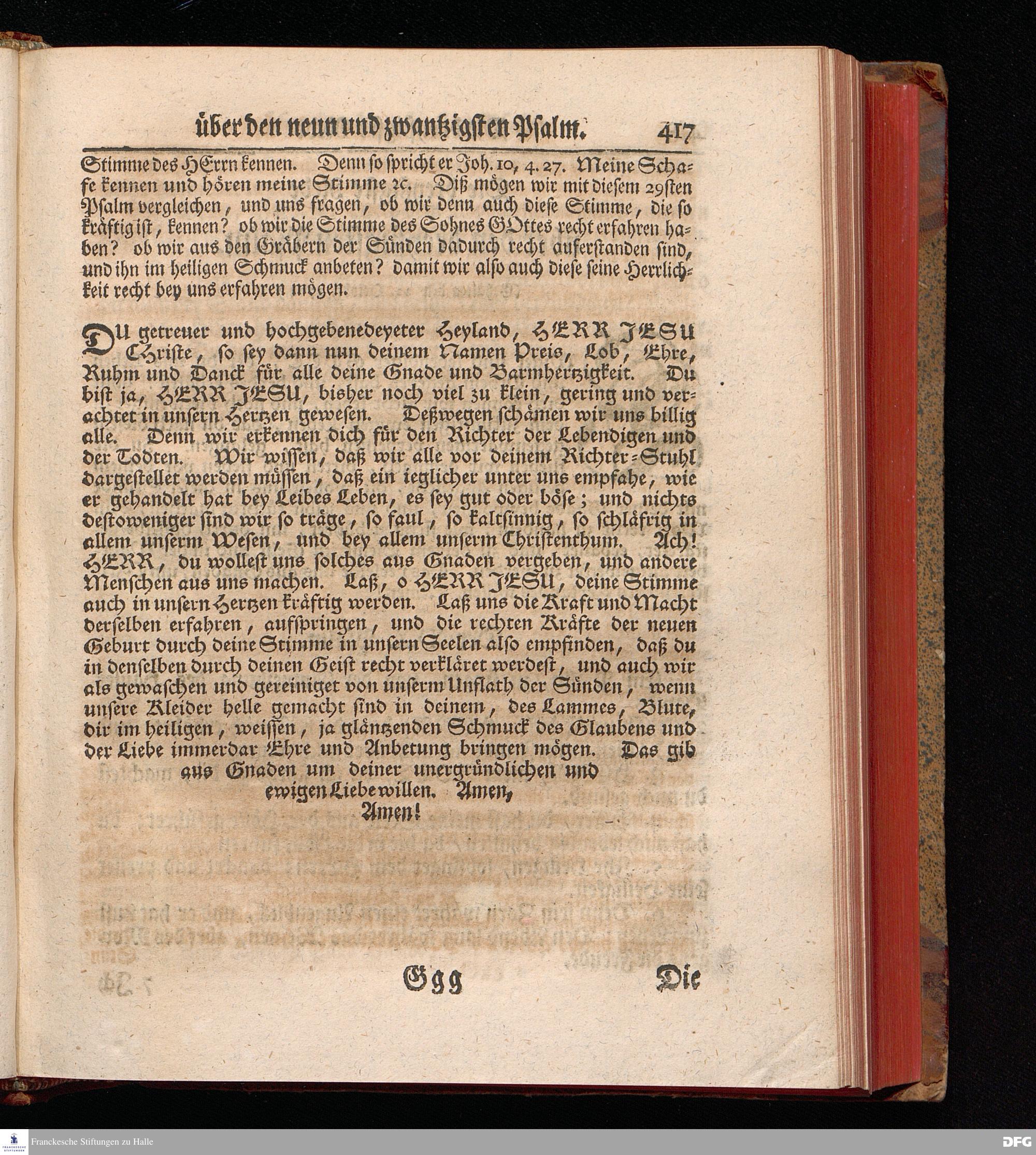 August Hermann Franckens, Weyl.Prof.Theol.Past.Ulr.und Schol. Erklärung Der Psalmen Davids; Erster [und] Anderer Theil, Mit einer Vorrede herausgegeben Von Gotthilf August Francken, S.S.Theol.Doct.und Prof.Publ.Ord.der ersten Dioeces des Saal-Creyses Inspectore und Pred.zur L.Fr. Andere Auflage. HALLE, in Verlegung des Wäysen=Hauses MDCCXLIII--MDCCXLV.