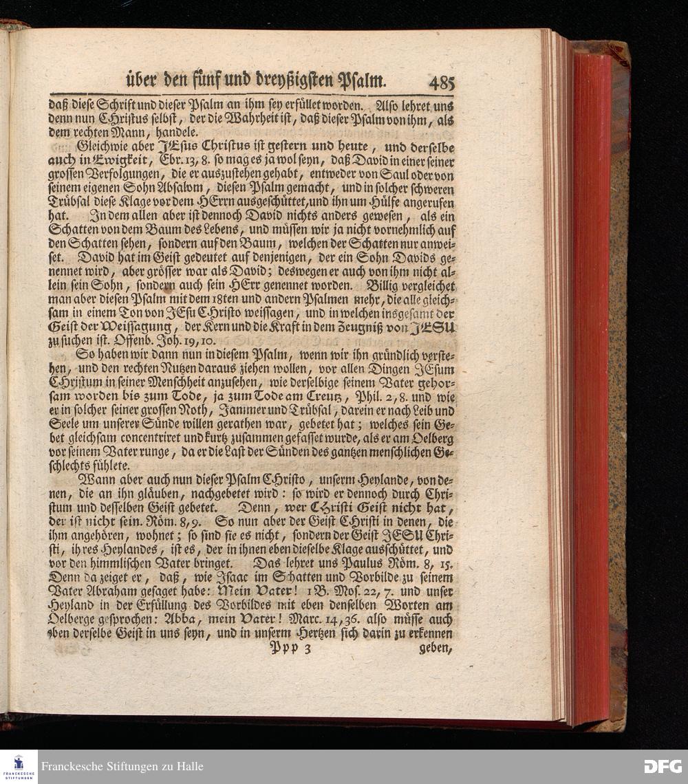 August Hermann Franckens, Weyl.Prof.Theol.Past.Ulr.und Schol. Erklärung Der Psalmen Davids; Erster [und] Anderer Theil, Mit einer Vorrede herausgegeben Von Gotthilf August Francken, S.S.Theol.Doct.und Prof.Publ.Ord.der ersten Dioeces des Saal-Creyses Inspectore und Pred.zur L.Fr. Andere Auflage. HALLE, in Verlegung des Wäysen=Hauses MDCCXLIII--MDCCXLV.