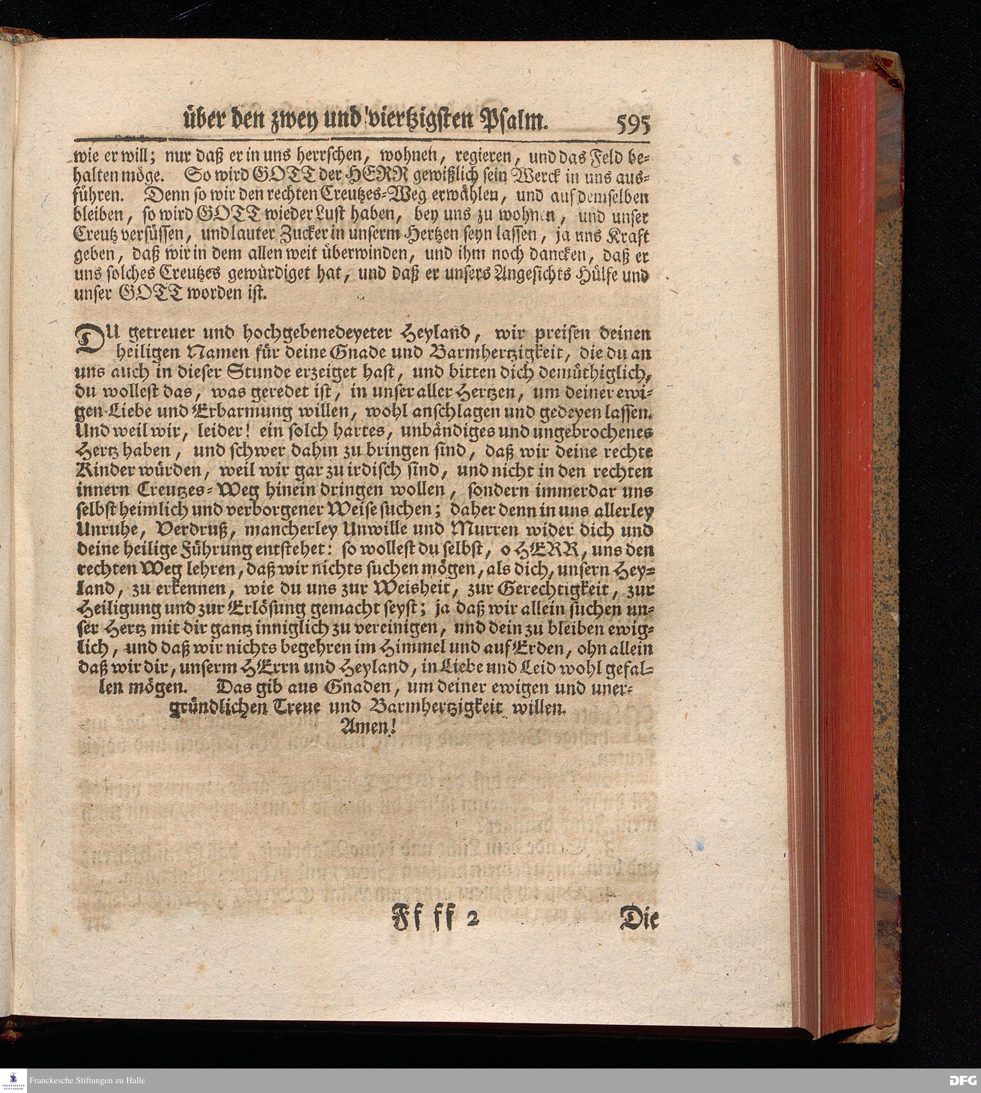 August Hermann Franckens, Weyl.Prof.Theol.Past.Ulr.und Schol. Erklärung Der Psalmen Davids; Erster [und] Anderer Theil, Mit einer Vorrede herausgegeben Von Gotthilf August Francken, S.S.Theol.Doct.und Prof.Publ.Ord.der ersten Dioeces des Saal-Creyses Inspectore und Pred.zur L.Fr. Andere Auflage. HALLE, in Verlegung des Wäysen=Hauses MDCCXLIII--MDCCXLV.