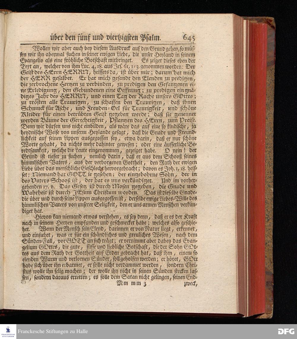 August Hermann Franckens, Weyl.Prof.Theol.Past.Ulr.und Schol. Erklärung Der Psalmen Davids; Erster [und] Anderer Theil, Mit einer Vorrede herausgegeben Von Gotthilf August Francken, S.S.Theol.Doct.und Prof.Publ.Ord.der ersten Dioeces des Saal-Creyses Inspectore und Pred.zur L.Fr. Andere Auflage. HALLE, in Verlegung des Wäysen=Hauses MDCCXLIII--MDCCXLV.