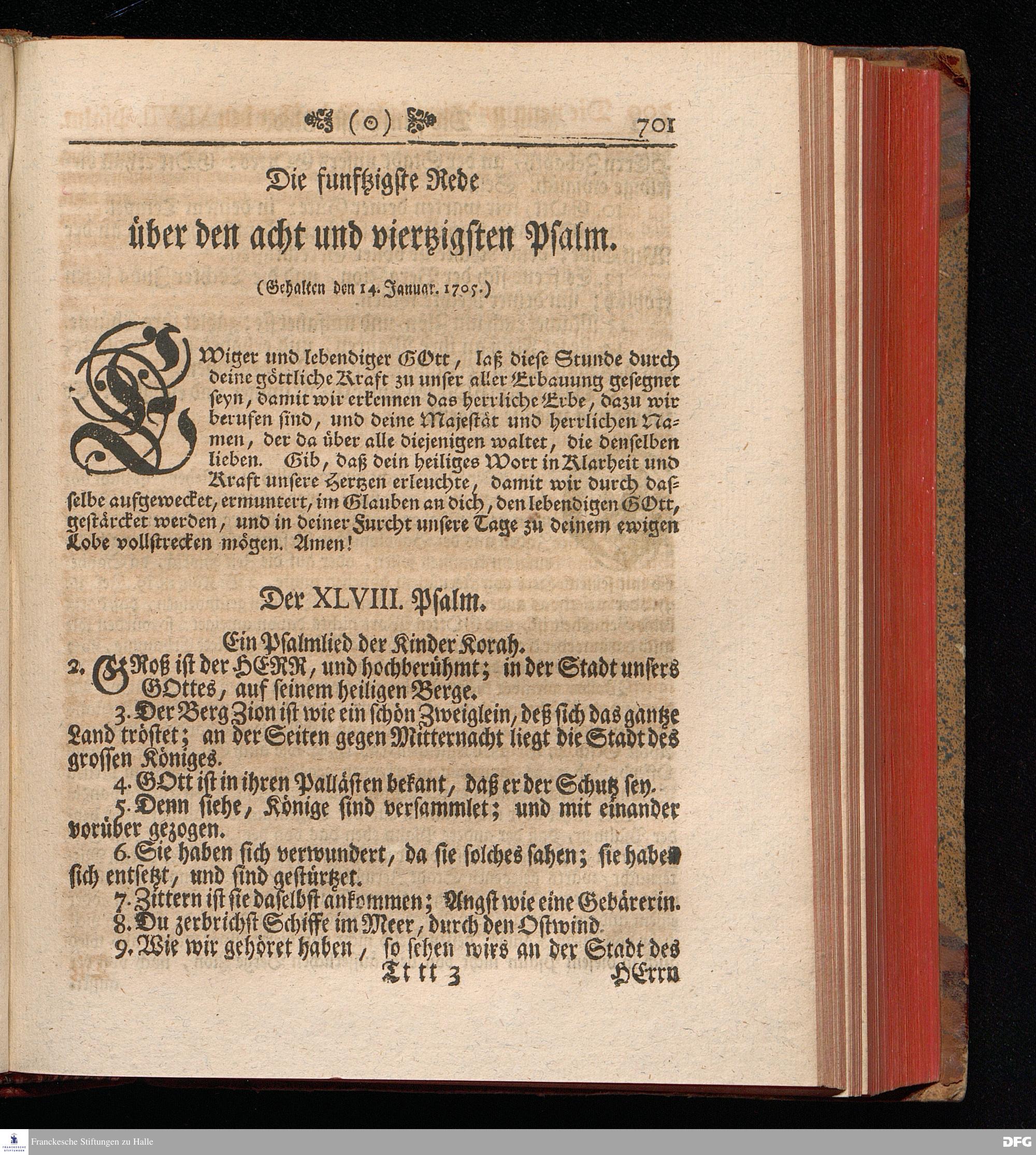 August Hermann Franckens, Weyl.Prof.Theol.Past.Ulr.und Schol. Erklärung Der Psalmen Davids; Erster [und] Anderer Theil, Mit einer Vorrede herausgegeben Von Gotthilf August Francken, S.S.Theol.Doct.und Prof.Publ.Ord.der ersten Dioeces des Saal-Creyses Inspectore und Pred.zur L.Fr. Andere Auflage. HALLE, in Verlegung des Wäysen=Hauses MDCCXLIII--MDCCXLV.