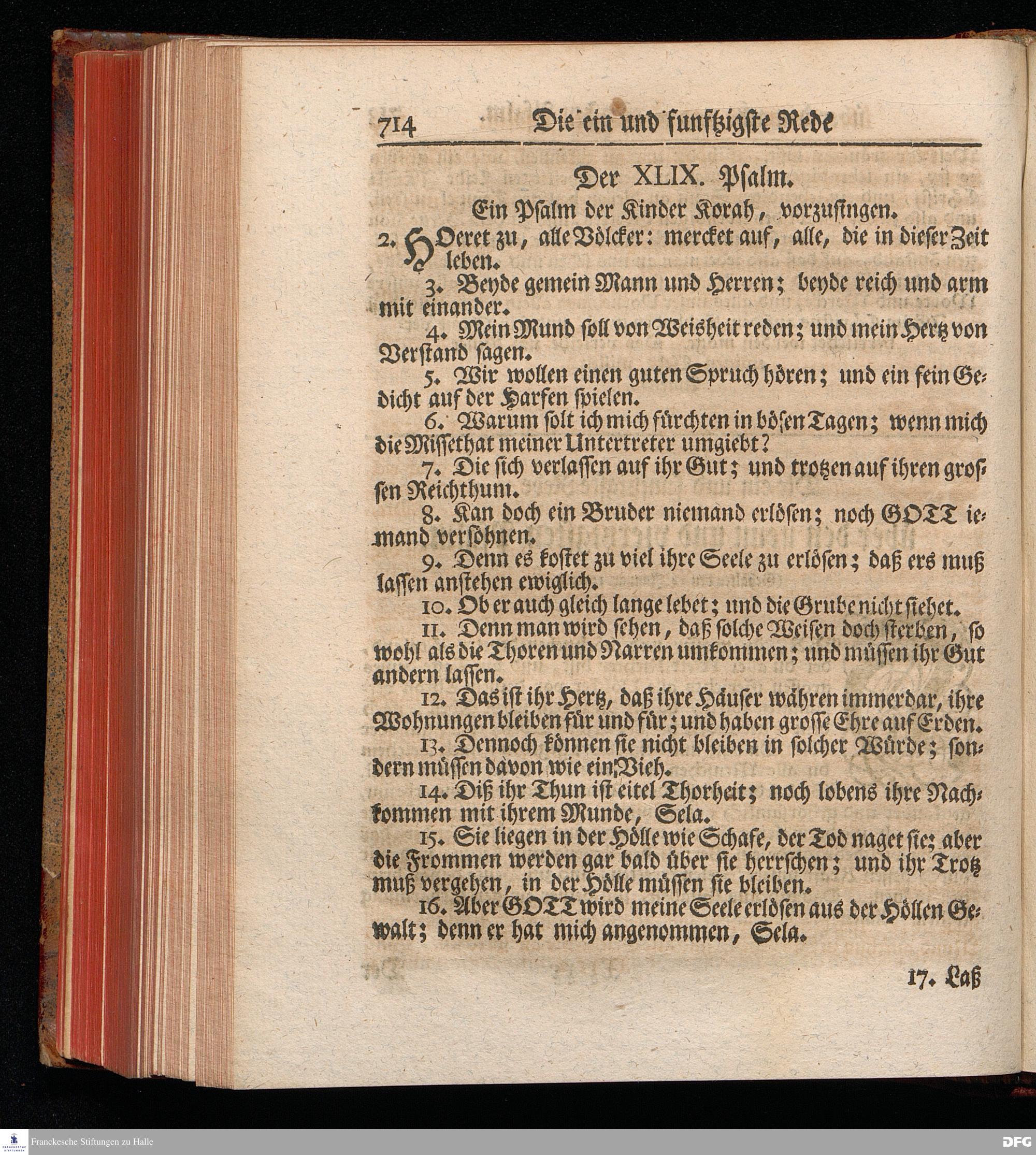 August Hermann Franckens, Weyl.Prof.Theol.Past.Ulr.und Schol. Erklärung Der Psalmen Davids; Erster [und] Anderer Theil, Mit einer Vorrede herausgegeben Von Gotthilf August Francken, S.S.Theol.Doct.und Prof.Publ.Ord.der ersten Dioeces des Saal-Creyses Inspectore und Pred.zur L.Fr. Andere Auflage. HALLE, in Verlegung des Wäysen=Hauses MDCCXLIII--MDCCXLV.