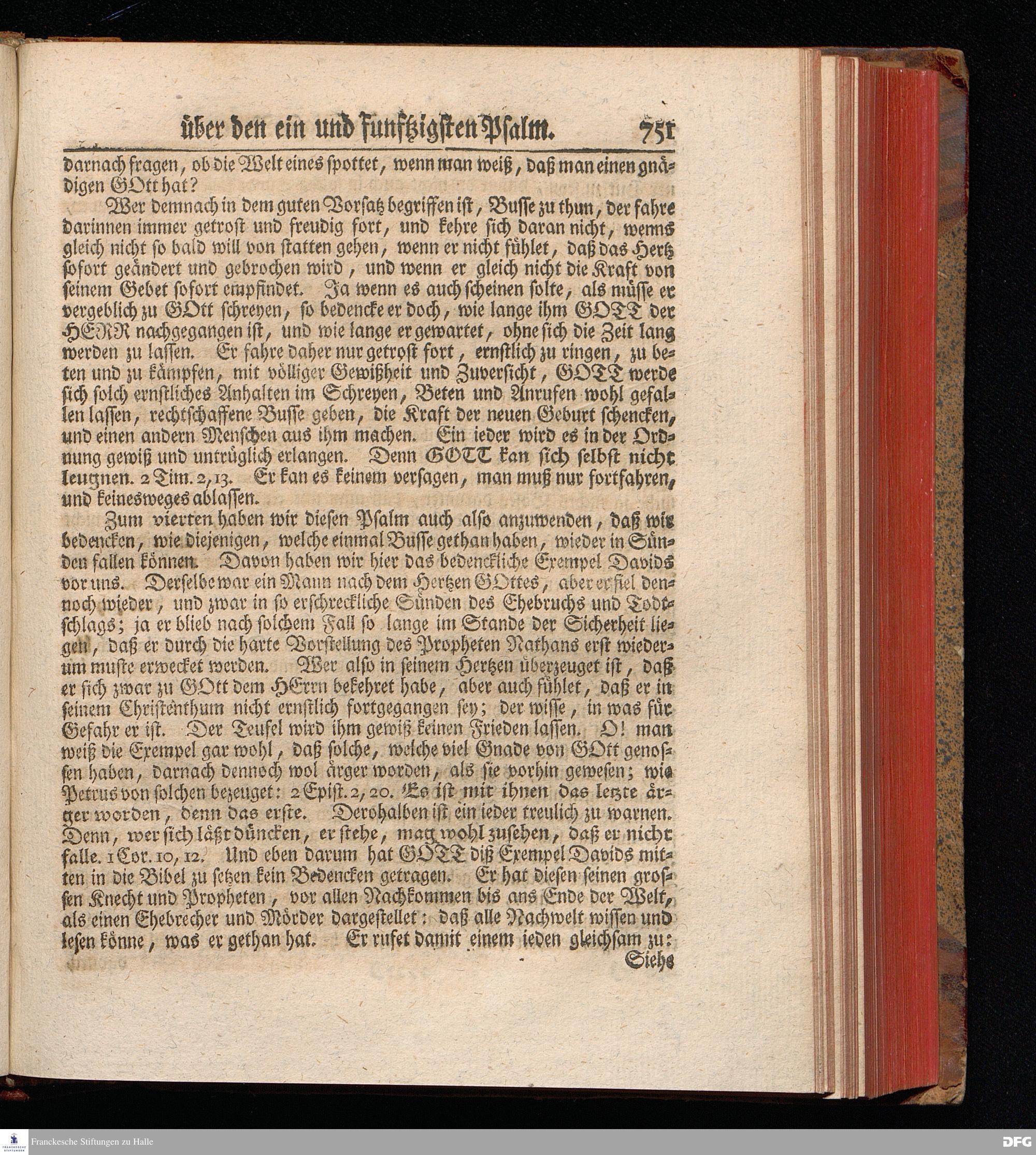 August Hermann Franckens, Weyl.Prof.Theol.Past.Ulr.und Schol. Erklärung Der Psalmen Davids; Erster [und] Anderer Theil, Mit einer Vorrede herausgegeben Von Gotthilf August Francken, S.S.Theol.Doct.und Prof.Publ.Ord.der ersten Dioeces des Saal-Creyses Inspectore und Pred.zur L.Fr. Andere Auflage. HALLE, in Verlegung des Wäysen=Hauses MDCCXLIII--MDCCXLV.