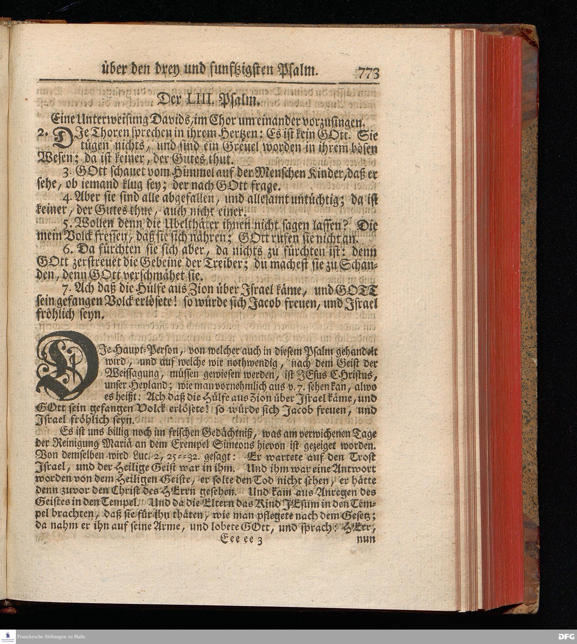 August Hermann Franckens, Weyl.Prof.Theol.Past.Ulr.und Schol. Erklärung Der Psalmen Davids; Erster [und] Anderer Theil, Mit einer Vorrede herausgegeben Von Gotthilf August Francken, S.S.Theol.Doct.und Prof.Publ.Ord.der ersten Dioeces des Saal-Creyses Inspectore und Pred.zur L.Fr. Andere Auflage. HALLE, in Verlegung des Wäysen=Hauses MDCCXLIII--MDCCXLV.