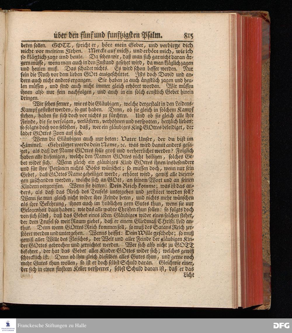 August Hermann Franckens, Weyl.Prof.Theol.Past.Ulr.und Schol. Erklärung Der Psalmen Davids; Erster [und] Anderer Theil, Mit einer Vorrede herausgegeben Von Gotthilf August Francken, S.S.Theol.Doct.und Prof.Publ.Ord.der ersten Dioeces des Saal-Creyses Inspectore und Pred.zur L.Fr. Andere Auflage. HALLE, in Verlegung des Wäysen=Hauses MDCCXLIII--MDCCXLV.