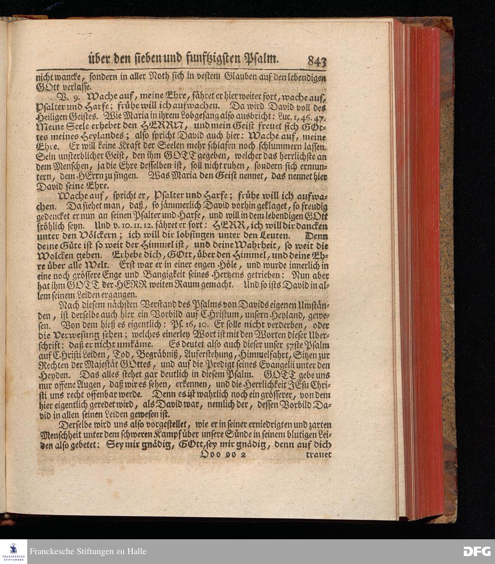 August Hermann Franckens, Weyl.Prof.Theol.Past.Ulr.und Schol. Erklärung Der Psalmen Davids; Erster [und] Anderer Theil, Mit einer Vorrede herausgegeben Von Gotthilf August Francken, S.S.Theol.Doct.und Prof.Publ.Ord.der ersten Dioeces des Saal-Creyses Inspectore und Pred.zur L.Fr. Andere Auflage. HALLE, in Verlegung des Wäysen=Hauses MDCCXLIII--MDCCXLV.