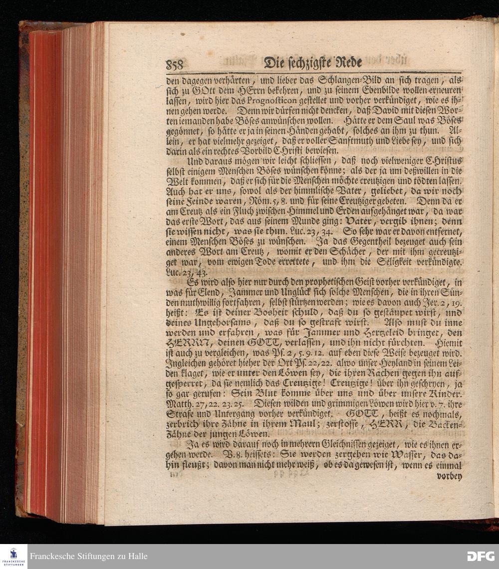 August Hermann Franckens, Weyl.Prof.Theol.Past.Ulr.und Schol. Erklärung Der Psalmen Davids; Erster [und] Anderer Theil, Mit einer Vorrede herausgegeben Von Gotthilf August Francken, S.S.Theol.Doct.und Prof.Publ.Ord.der ersten Dioeces des Saal-Creyses Inspectore und Pred.zur L.Fr. Andere Auflage. HALLE, in Verlegung des Wäysen=Hauses MDCCXLIII--MDCCXLV.