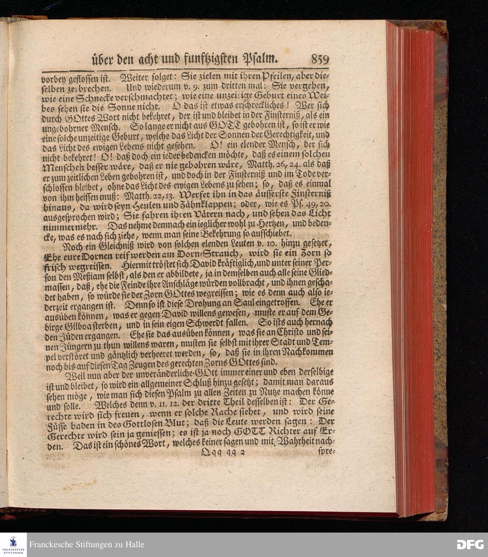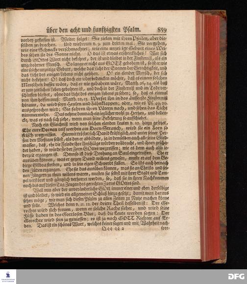 August Hermann Franckens, Weyl.Prof.Theol.Past.Ulr.und Schol. Erklärung Der Psalmen Davids; Erster [und] Anderer Theil, Mit einer Vorrede herausgegeben Von Gotthilf August Francken, S.S.Theol.Doct.und Prof.Publ.Ord.der ersten Dioeces des Saal-Creyses Inspectore und Pred.zur L.Fr. Andere Auflage. HALLE, in Verlegung des Wäysen=Hauses MDCCXLIII--MDCCXLV.