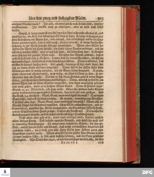 August Hermann Franckens, Weyl.Prof.Theol.Past.Ulr.und Schol. Erklärung Der Psalmen Davids; Erster [und] Anderer Theil, Mit einer Vorrede herausgegeben Von Gotthilf August Francken, S.S.Theol.Doct.und Prof.Publ.Ord.der ersten Dioeces des Saal-Creyses Inspectore und Pred.zur L.Fr. Andere Auflage. HALLE, in Verlegung des Wäysen=Hauses MDCCXLIII--MDCCXLV.