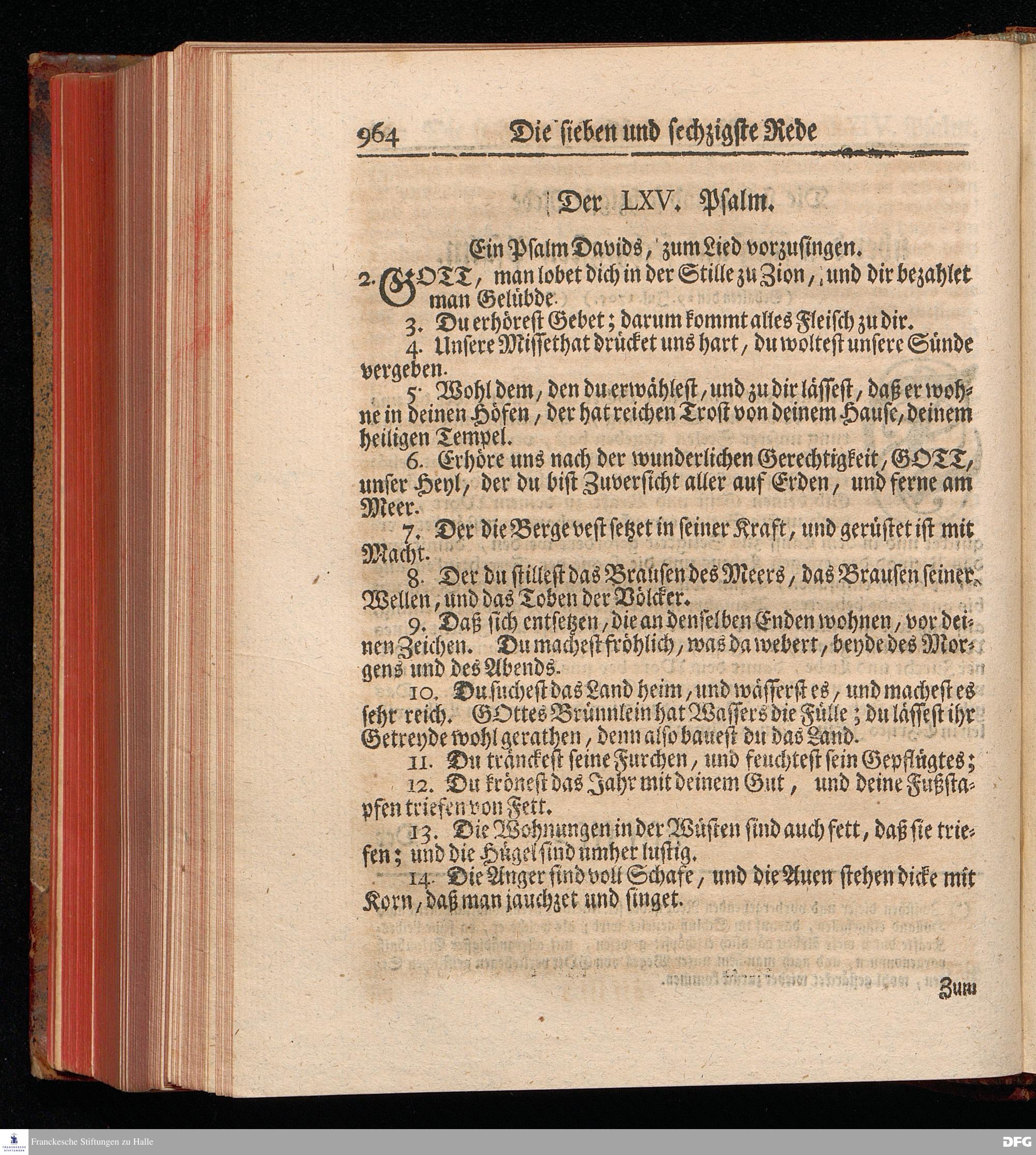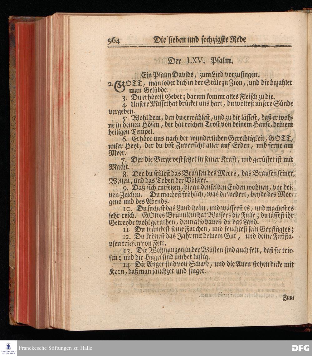 August Hermann Franckens, Weyl.Prof.Theol.Past.Ulr.und Schol. Erklärung Der Psalmen Davids; Erster [und] Anderer Theil, Mit einer Vorrede herausgegeben Von Gotthilf August Francken, S.S.Theol.Doct.und Prof.Publ.Ord.der ersten Dioeces des Saal-Creyses Inspectore und Pred.zur L.Fr. Andere Auflage. HALLE, in Verlegung des Wäysen=Hauses MDCCXLIII--MDCCXLV.