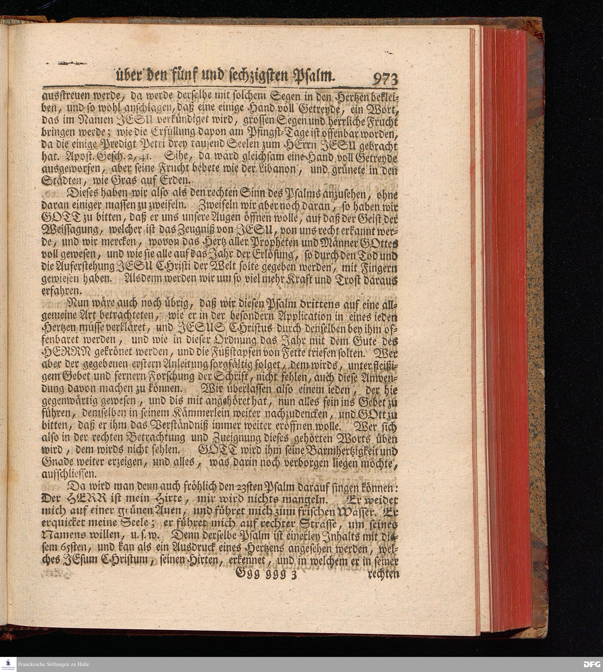 August Hermann Franckens, Weyl.Prof.Theol.Past.Ulr.und Schol. Erklärung Der Psalmen Davids; Erster [und] Anderer Theil, Mit einer Vorrede herausgegeben Von Gotthilf August Francken, S.S.Theol.Doct.und Prof.Publ.Ord.der ersten Dioeces des Saal-Creyses Inspectore und Pred.zur L.Fr. Andere Auflage. HALLE, in Verlegung des Wäysen=Hauses MDCCXLIII--MDCCXLV.