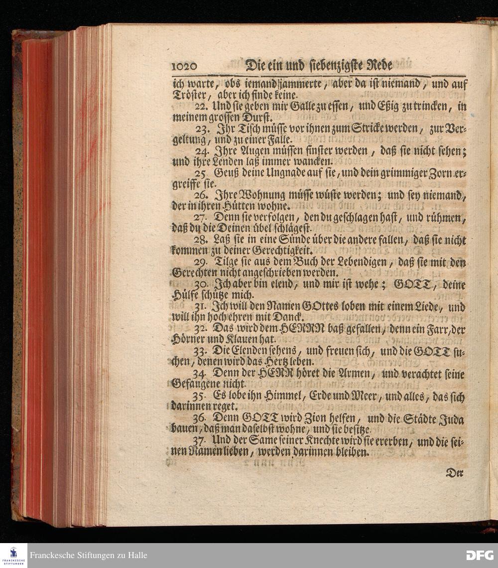August Hermann Franckens, Weyl.Prof.Theol.Past.Ulr.und Schol. Erklärung Der Psalmen Davids; Erster [und] Anderer Theil, Mit einer Vorrede herausgegeben Von Gotthilf August Francken, S.S.Theol.Doct.und Prof.Publ.Ord.der ersten Dioeces des Saal-Creyses Inspectore und Pred.zur L.Fr. Andere Auflage. HALLE, in Verlegung des Wäysen=Hauses MDCCXLIII--MDCCXLV.