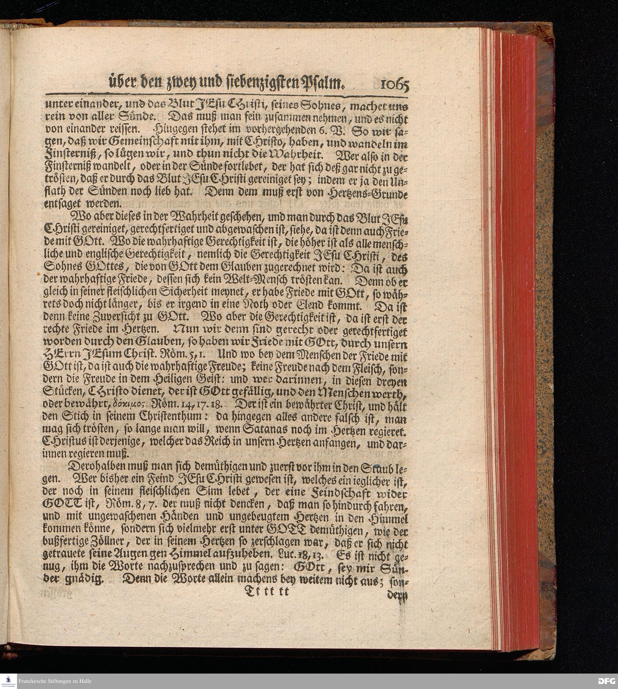 August Hermann Franckens, Weyl.Prof.Theol.Past.Ulr.und Schol. Erklärung Der Psalmen Davids; Erster [und] Anderer Theil, Mit einer Vorrede herausgegeben Von Gotthilf August Francken, S.S.Theol.Doct.und Prof.Publ.Ord.der ersten Dioeces des Saal-Creyses Inspectore und Pred.zur L.Fr. Andere Auflage. HALLE, in Verlegung des Wäysen=Hauses MDCCXLIII--MDCCXLV.