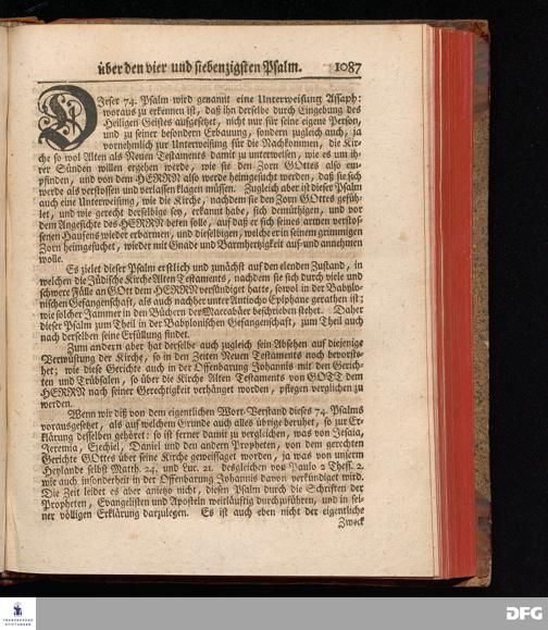 August Hermann Franckens, Weyl.Prof.Theol.Past.Ulr.und Schol. Erklärung Der Psalmen Davids; Erster [und] Anderer Theil, Mit einer Vorrede herausgegeben Von Gotthilf August Francken, S.S.Theol.Doct.und Prof.Publ.Ord.der ersten Dioeces des Saal-Creyses Inspectore und Pred.zur L.Fr. Andere Auflage. HALLE, in Verlegung des Wäysen=Hauses MDCCXLIII--MDCCXLV.