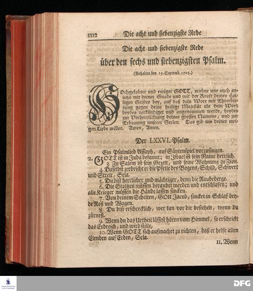 August Hermann Franckens, Weyl.Prof.Theol.Past.Ulr.und Schol. Erklärung Der Psalmen Davids; Erster [und] Anderer Theil, Mit einer Vorrede herausgegeben Von Gotthilf August Francken, S.S.Theol.Doct.und Prof.Publ.Ord.der ersten Dioeces des Saal-Creyses Inspectore und Pred.zur L.Fr. Andere Auflage. HALLE, in Verlegung des Wäysen=Hauses MDCCXLIII--MDCCXLV.