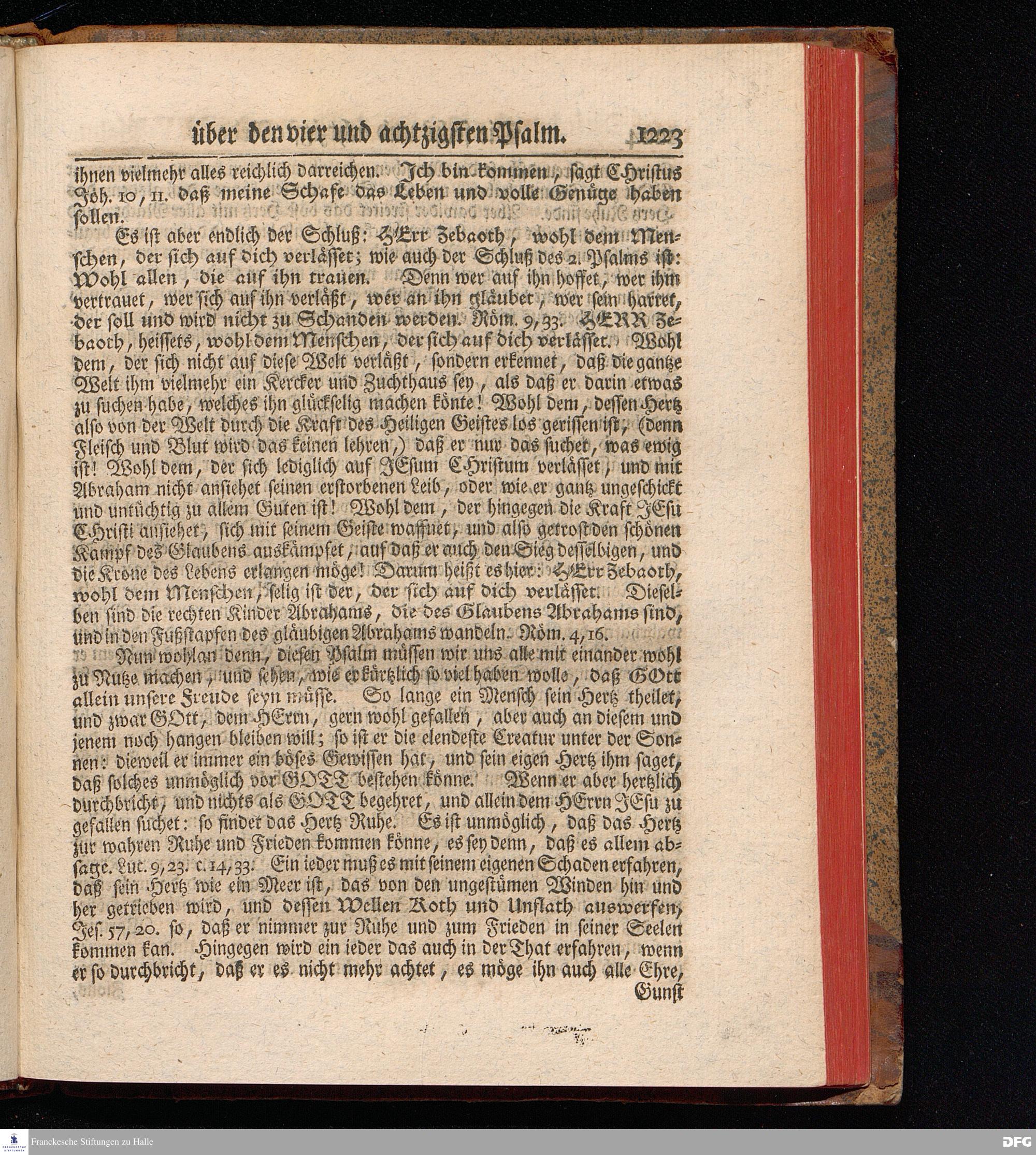 August Hermann Franckens, Weyl.Prof.Theol.Past.Ulr.und Schol. Erklärung Der Psalmen Davids; Erster [und] Anderer Theil, Mit einer Vorrede herausgegeben Von Gotthilf August Francken, S.S.Theol.Doct.und Prof.Publ.Ord.der ersten Dioeces des Saal-Creyses Inspectore und Pred.zur L.Fr. Andere Auflage. HALLE, in Verlegung des Wäysen=Hauses MDCCXLIII--MDCCXLV.