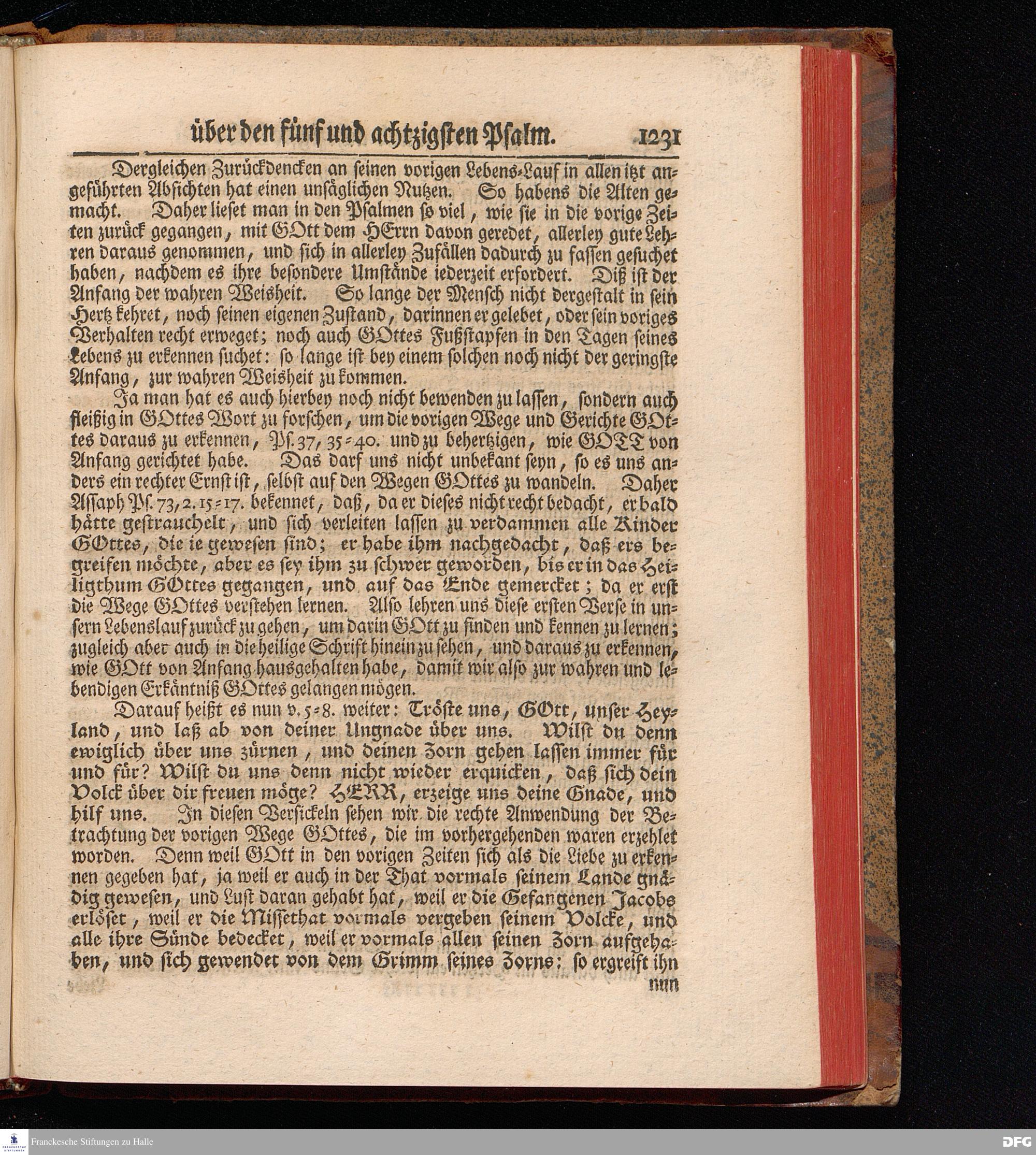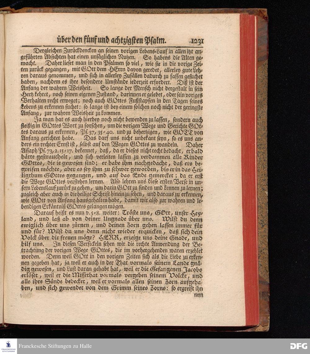 August Hermann Franckens, Weyl.Prof.Theol.Past.Ulr.und Schol. Erklärung Der Psalmen Davids; Erster [und] Anderer Theil, Mit einer Vorrede herausgegeben Von Gotthilf August Francken, S.S.Theol.Doct.und Prof.Publ.Ord.der ersten Dioeces des Saal-Creyses Inspectore und Pred.zur L.Fr. Andere Auflage. HALLE, in Verlegung des Wäysen=Hauses MDCCXLIII--MDCCXLV.