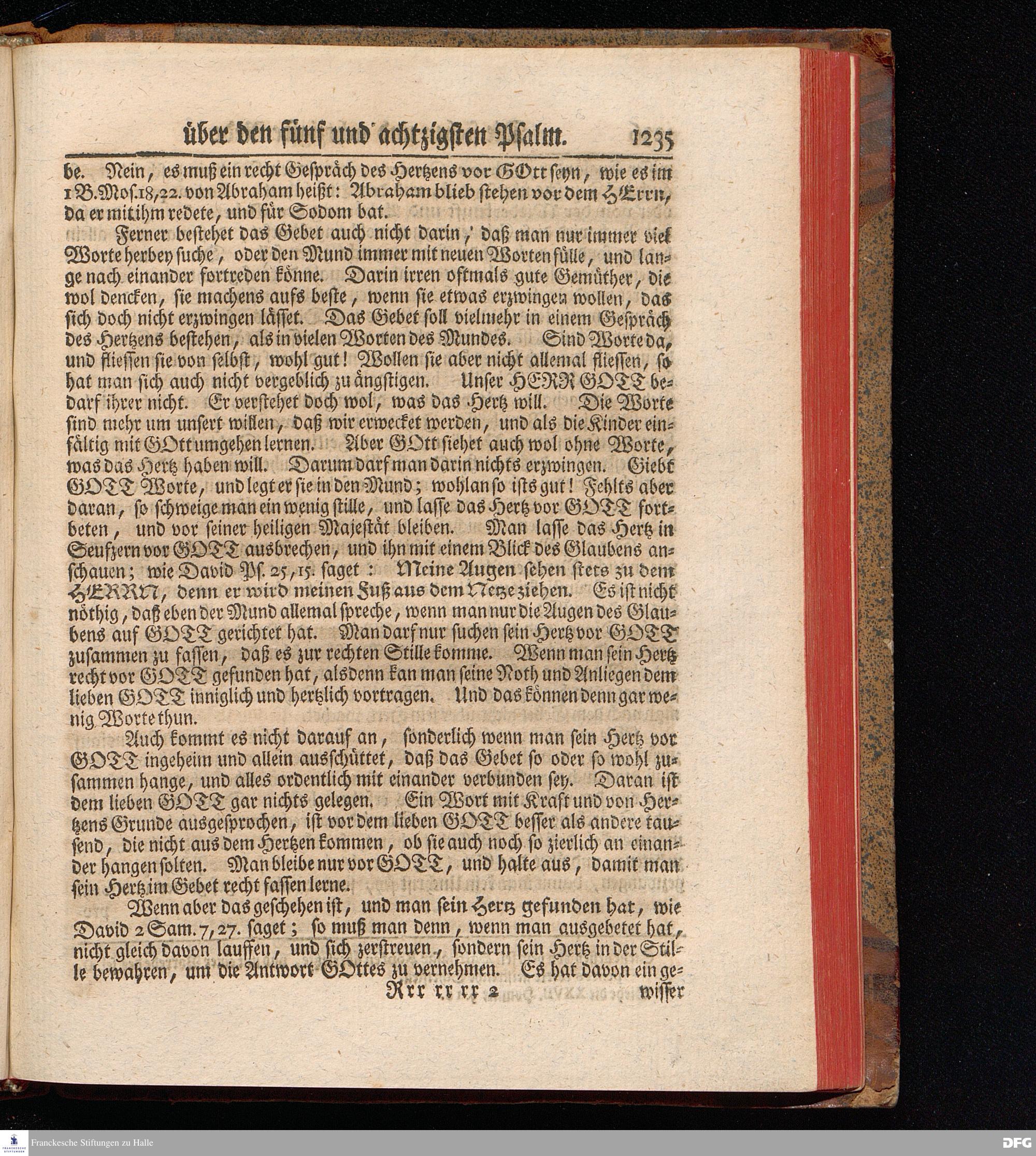 August Hermann Franckens, Weyl.Prof.Theol.Past.Ulr.und Schol. Erklärung Der Psalmen Davids; Erster [und] Anderer Theil, Mit einer Vorrede herausgegeben Von Gotthilf August Francken, S.S.Theol.Doct.und Prof.Publ.Ord.der ersten Dioeces des Saal-Creyses Inspectore und Pred.zur L.Fr. Andere Auflage. HALLE, in Verlegung des Wäysen=Hauses MDCCXLIII--MDCCXLV.