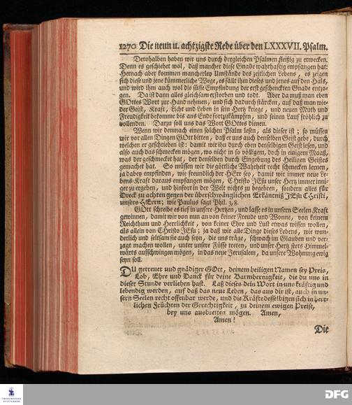 August Hermann Franckens, Weyl.Prof.Theol.Past.Ulr.und Schol. Erklärung Der Psalmen Davids; Erster [und] Anderer Theil, Mit einer Vorrede herausgegeben Von Gotthilf August Francken, S.S.Theol.Doct.und Prof.Publ.Ord.der ersten Dioeces des Saal-Creyses Inspectore und Pred.zur L.Fr. Andere Auflage. HALLE, in Verlegung des Wäysen=Hauses MDCCXLIII--MDCCXLV.