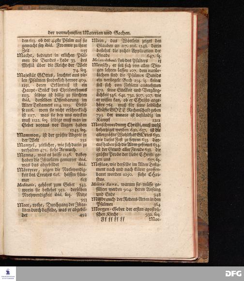 August Hermann Franckens, Weyl.Prof.Theol.Past.Ulr.und Schol. Erklärung Der Psalmen Davids; Erster [und] Anderer Theil, Mit einer Vorrede herausgegeben Von Gotthilf August Francken, S.S.Theol.Doct.und Prof.Publ.Ord.der ersten Dioeces des Saal-Creyses Inspectore und Pred.zur L.Fr. Andere Auflage. HALLE, in Verlegung des Wäysen=Hauses MDCCXLIII--MDCCXLV.