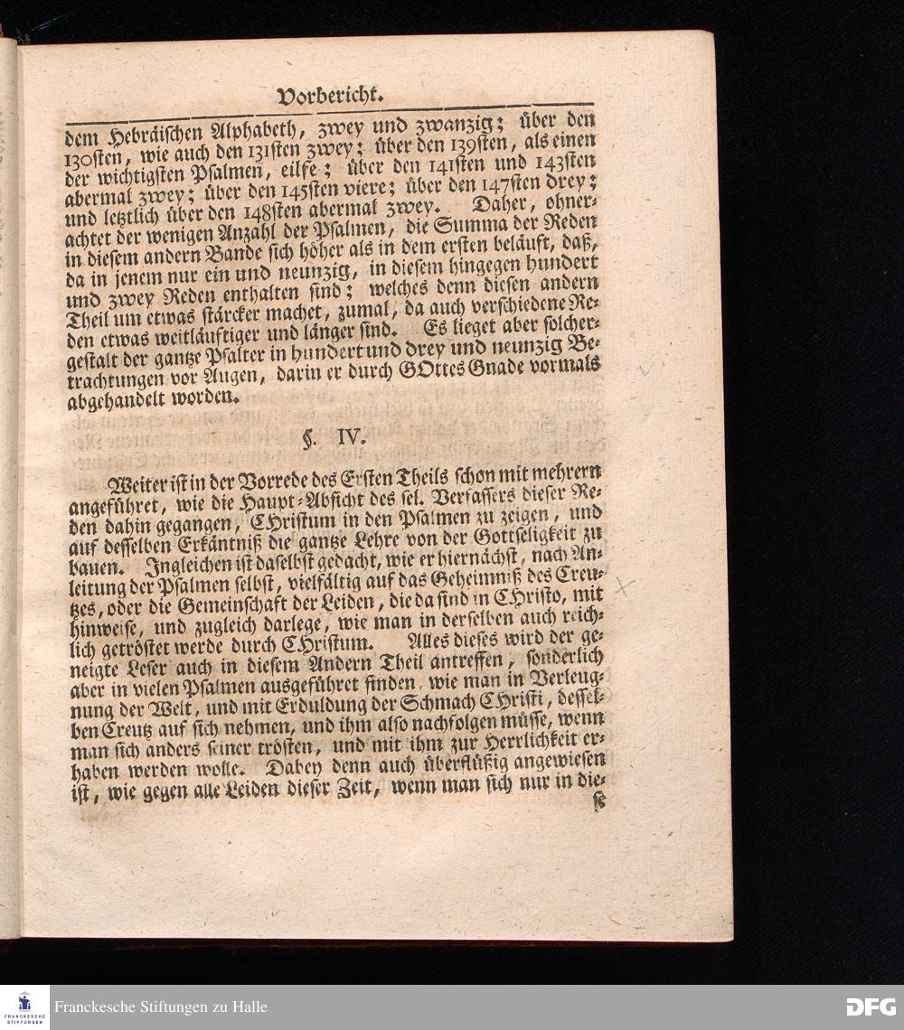 August Hermann Franckens, Weyl.Prof.Theol.Past.Ulr.und Schol. Erklärung Der Psalmen Davids; Erster [und] Anderer Theil, Mit einer Vorrede herausgegeben Von Gotthilf August Francken, S.S.Theol.Doct.und Prof.Publ.Ord.der ersten Dioeces des Saal-Creyses Inspectore und Pred.zur L.Fr. Andere Auflage. HALLE, in Verlegung des Wäysen=Hauses MDCCXLIII--MDCCXLV.