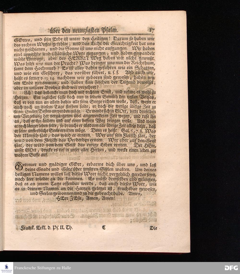 August Hermann Franckens, Weyl.Prof.Theol.Past.Ulr.und Schol. Erklärung Der Psalmen Davids; Erster [und] Anderer Theil, Mit einer Vorrede herausgegeben Von Gotthilf August Francken, S.S.Theol.Doct.und Prof.Publ.Ord.der ersten Dioeces des Saal-Creyses Inspectore und Pred.zur L.Fr. Andere Auflage. HALLE, in Verlegung des Wäysen=Hauses MDCCXLIII--MDCCXLV.