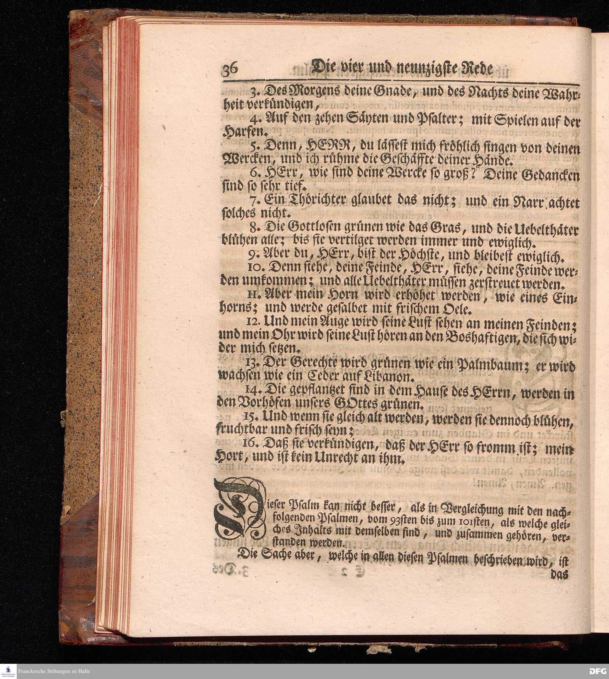 August Hermann Franckens, Weyl.Prof.Theol.Past.Ulr.und Schol. Erklärung Der Psalmen Davids; Erster [und] Anderer Theil, Mit einer Vorrede herausgegeben Von Gotthilf August Francken, S.S.Theol.Doct.und Prof.Publ.Ord.der ersten Dioeces des Saal-Creyses Inspectore und Pred.zur L.Fr. Andere Auflage. HALLE, in Verlegung des Wäysen=Hauses MDCCXLIII--MDCCXLV.